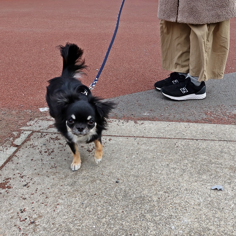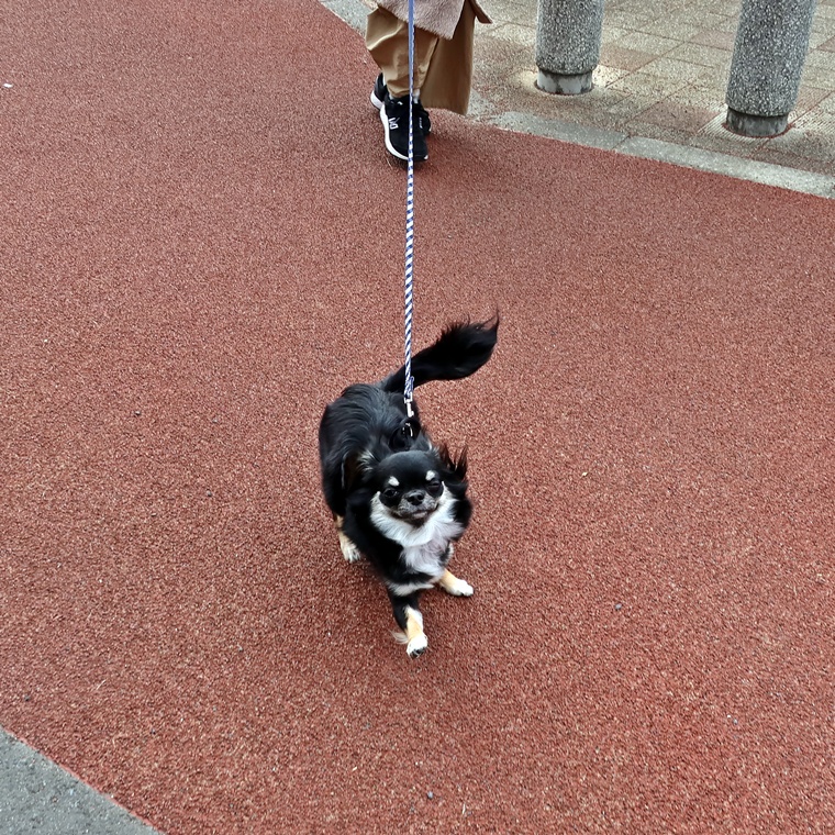 実際にお散歩の状況も見させて頂きました。屋外でも極端に怖がることはありませんが、経験不足から第三者に声を掛けられることで驚いてしまう状況は見られました。他の犬とのすれ違いもありましたが、他の犬に対してのコミュニケーションは、あまり極端に進める必要はありませんので、無視ができるようにする事を目標にしていく方がベストです。