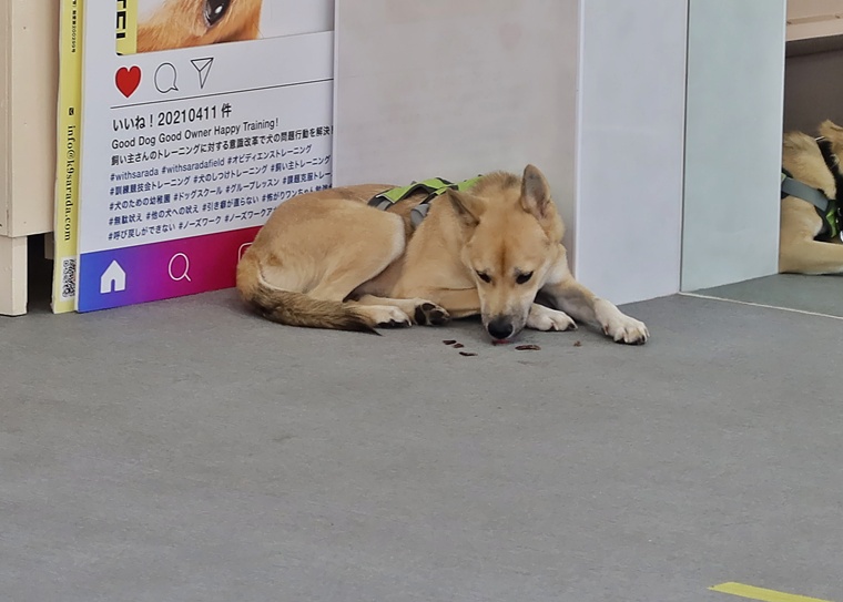 新しい環境下で初めての人から初めてのオヤツを食べることができるというのは、今後の変化へ期待も持てると思いますが、あまりニンゲン側が監視したり関与が強くなると警戒や拒否反応が強くなります。「愛情」はニンゲン側の一方的な表現ですので、その気持ちを受け入れられるスペースを、やまと君が持てないと、本来の愛情という表現や、それによる結果には結びつかなくなります。