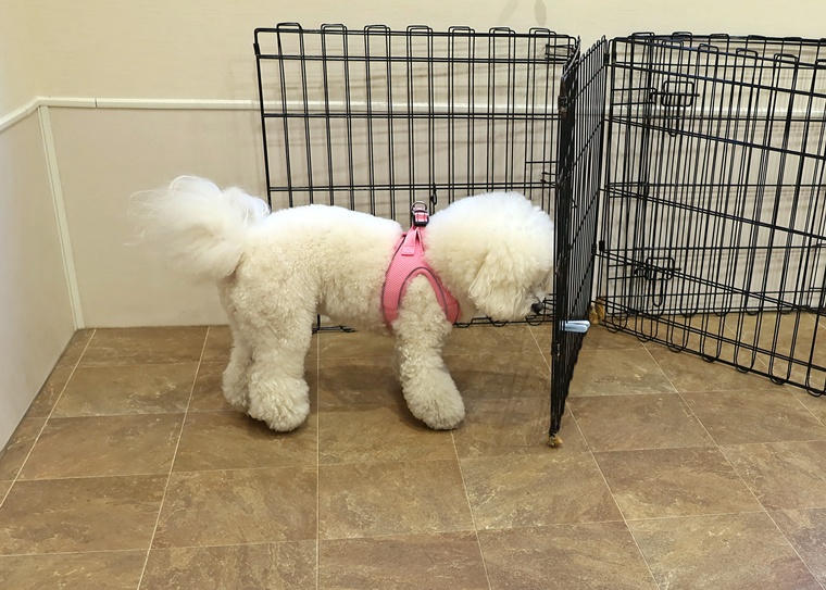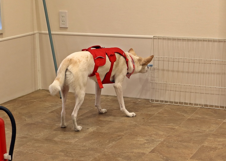 告知の際の静止姿勢や静止時間が延びてきていますが、ハンドラーからの報酬のタイミングを先読みする動きも出ていますので、パターンから少し外すような対応も考えていきましょう。少し難易度が高い設定は、時間も要しますが経験値を高める意味でもチャレンジしていきましょう。