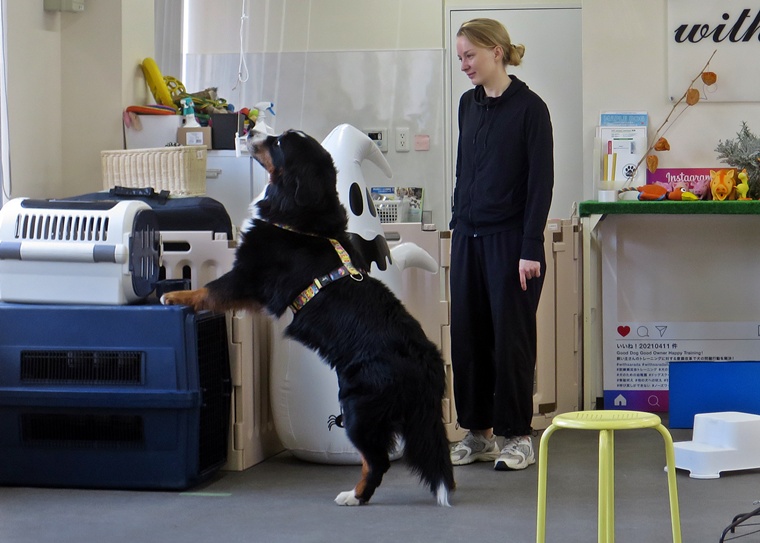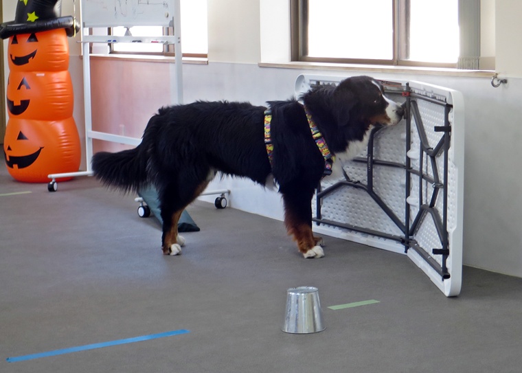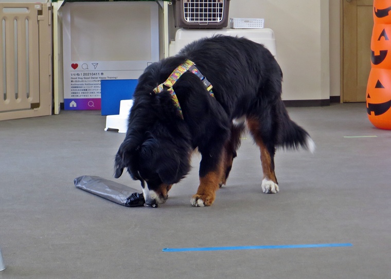 今日のブルーノ君のノーズワークパーソナルレッスンは、インドアサーチのステップアップセッションです。