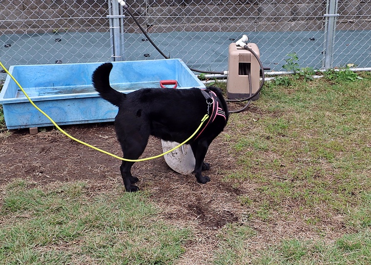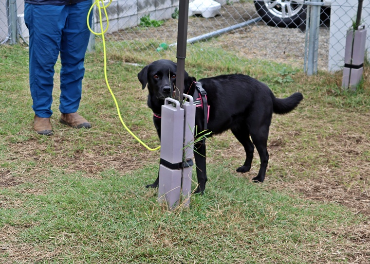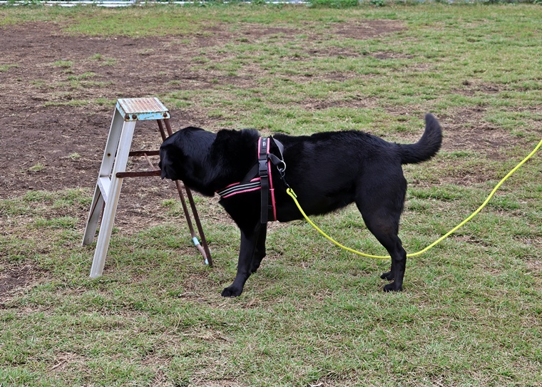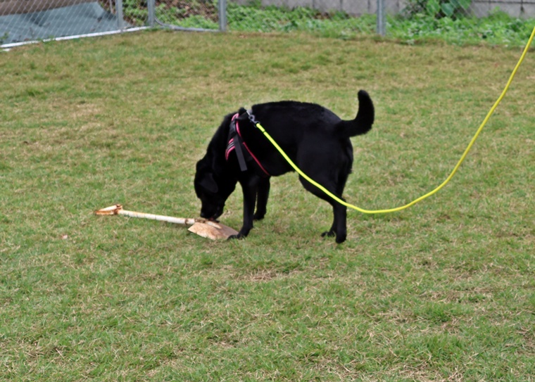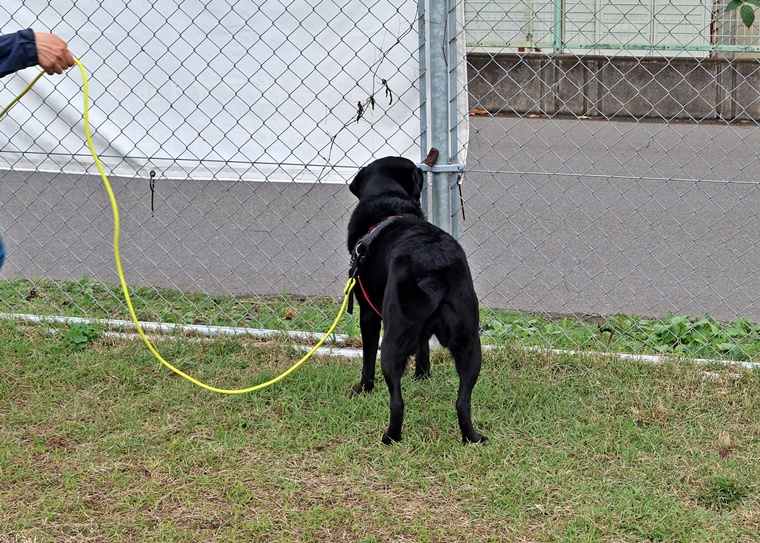 夏前に前足を痛めてしまい、暑い夏を間をリハビリ期間として過ごしていたようですが、捜索のスイッチは、忘れずにすぐに意欲的な捜索でハイドに到達できていました。ハンドラーが心配するよりもピッキーちゃんの能力は高く、セッションを進めるごとに告知の際の静止姿勢も安定してきていました。ハンドラーのリードの捌き方を今後はステップアップして、ピッキーちゃんの捜索の動きを良く観察し、より効率的な動きができるようにしていきましょう。次回以降は本格的に刺激の中のアウトドアへの挑戦が始まります。