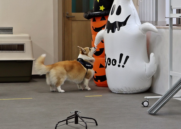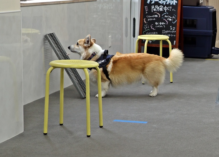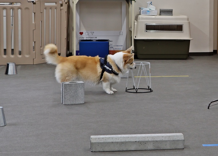 インドアの設定では、ほぼ問題なくハイドに到達でき、告知の精度も安定してきました。ただ、ハンドラーからの報酬のタイミングが早すぎてしまい、先読みの動きも見られますので改善をしていきましょう。今後は、アウトドアでの捜索を目的にステップアップをしていきましょう。