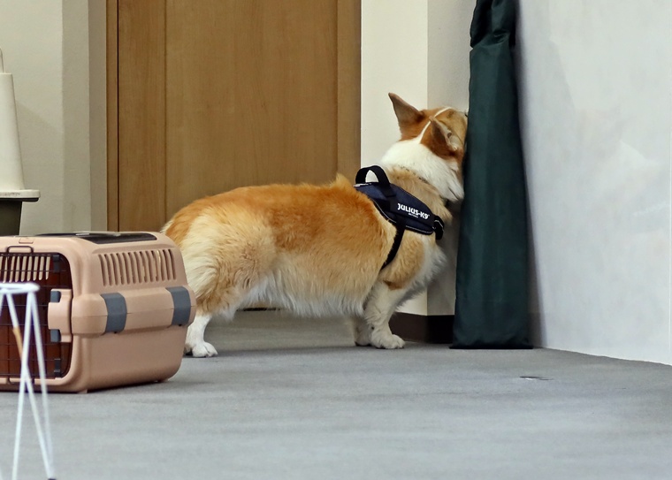 今日のパコ君のノーズワークパーソナルレッスンは、インドアサーチのステップアップセッションです。