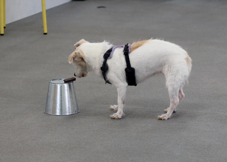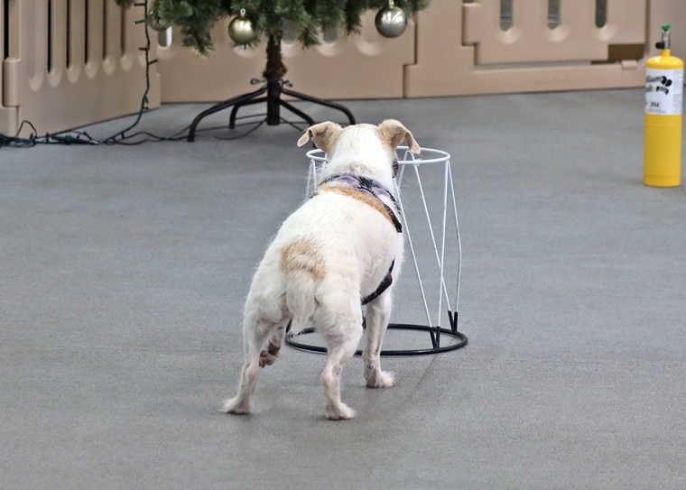 最初のセッションは、とても意欲的で集中力もありましたが、2回目以降のセッションでは、少し疲れも感じられ、いつものラニちゃんの動きから比較すると集中力の低下が見られました。今回のレッスンでは、ハンドラースキルの向上も目的となり、ラニちゃんのセッションとしては、少し難易度が高くなり過ぎてしまったようです。それでも、後半は、素早くハイドに到達できて楽しく終われました。