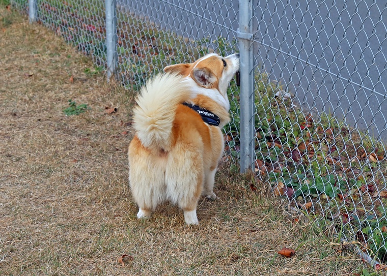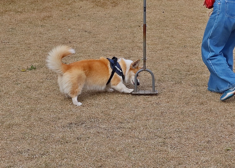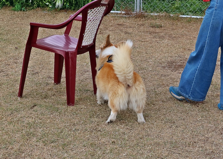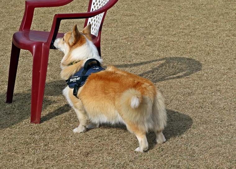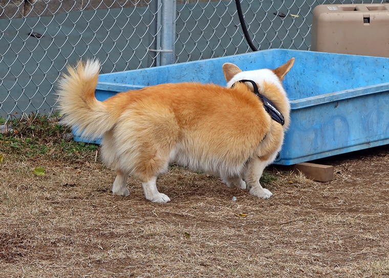 ランの中の誘惑臭に対して反応は、どうか?ハイドに対しての反応はどうか?など不安の中のスタートでしたが、セントコーンの中に入ると一気にハイドまで到達できていました。ただ、経験値は浅いですから、集中の維持が出来なくなる場面も見られましたので、今後のセッションで経験を増やしながら集中の維持の強化を進めていきましょう。またアウトドアでの捜索は、インドアのように限られた空間ではない事と、風の影響を大きく受ける事から、ハンドラーのハンドリングが必要であり、とても大切なポイントとなります。パコ君なりの捜索に頼ると、風上側だけを捜索しても、風下側から捜索を始めないと、セントコーンの端を捉えられるなりますので、今後のハンドラースキルの向上もセッションの中でステップアップしていきましょう。