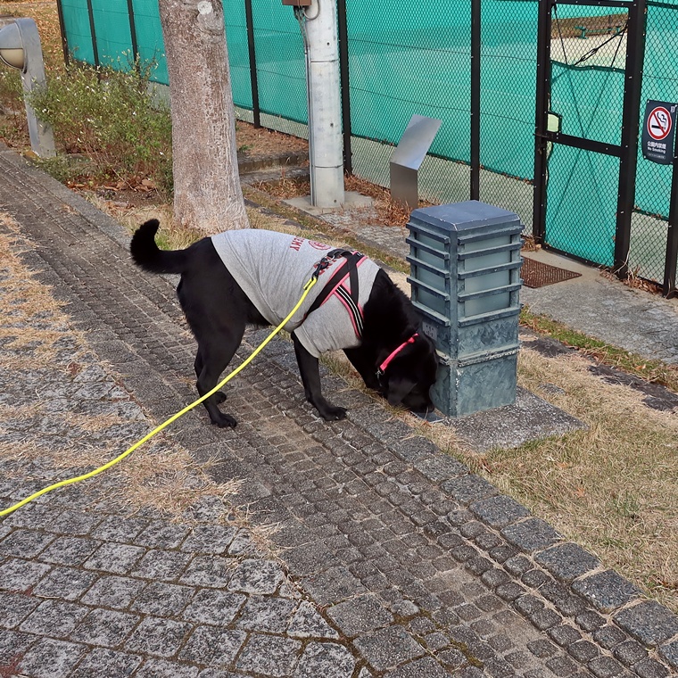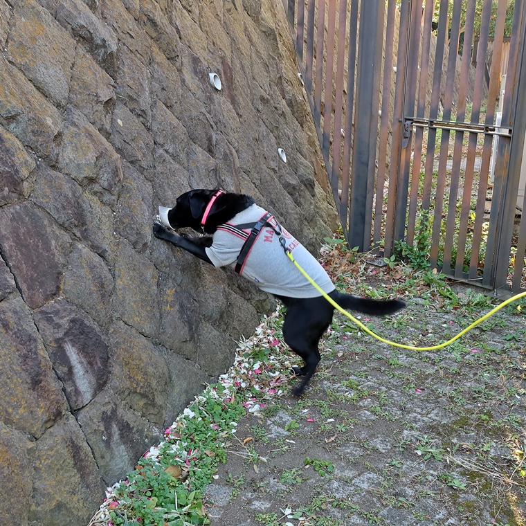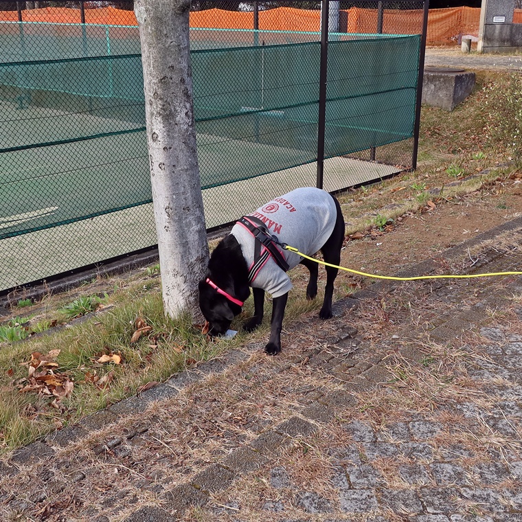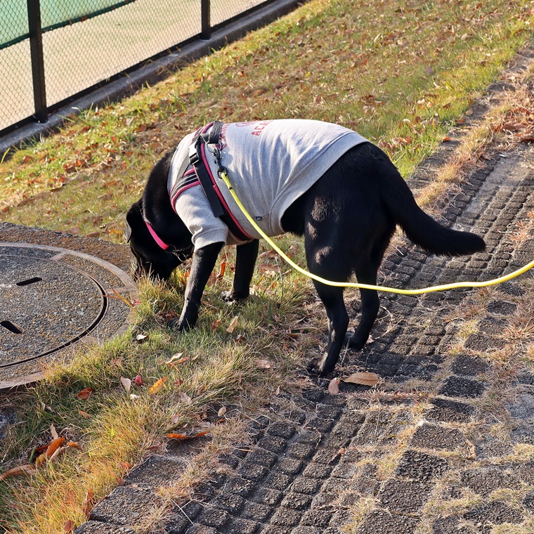 今日のピッキーちゃんのノーズワークアウトドアサーチは、前回のセッションからのステップアップとして、少し設定を変えながら現状の確認をさせて頂きました。