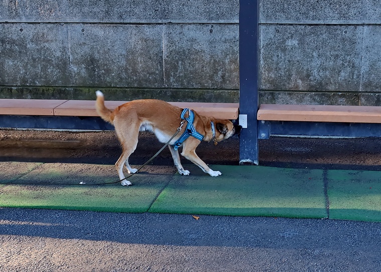ミーナちゃんの大きなディストラクションは、他の犬ですが、意識の切り替えができるようになっていますし、全ての設定を安定した捜索でクリアできていました。他の犬に関しては、どちらかよ言うと、ハンドラーの方が心配をし過ぎているようでうですので、今までのトレーニングで学んだコマンドで冷静に対応して、捜索のスイッチへ切り替えましょう。スタートの際の、ハンドラーのハンドシグナルは、ミーナちゃんに伝わるように出していきましょう。