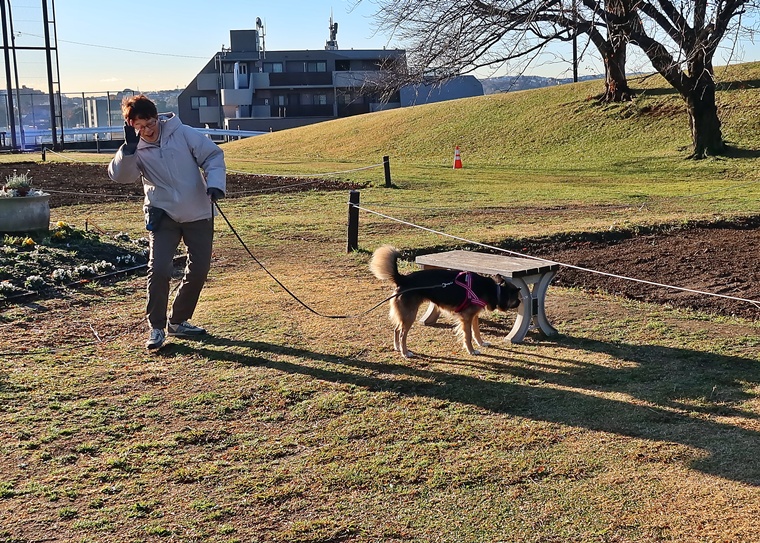 今日のミーナちゃん&かん太郎君のノーズワークパーソナルレッスンは、アロマステージ・アウトドアサーチのステップアップセッションです。