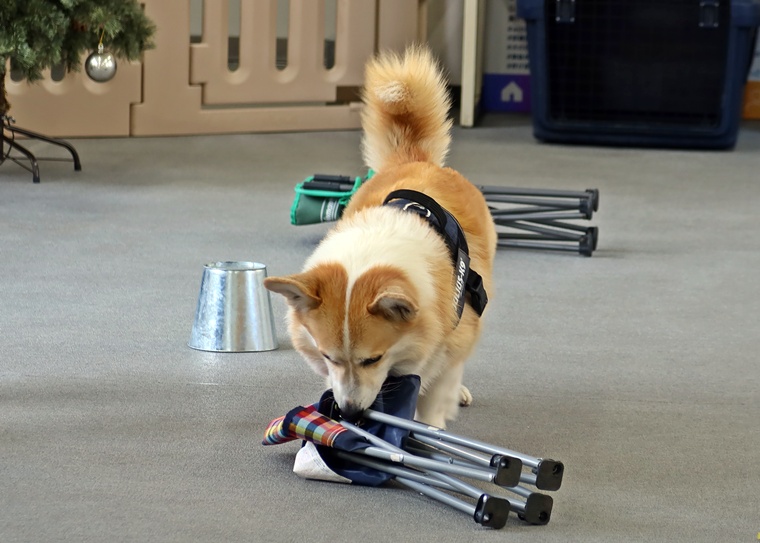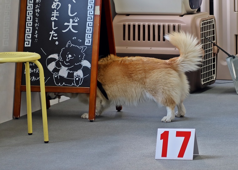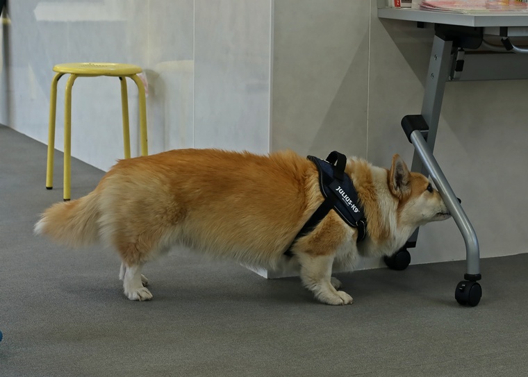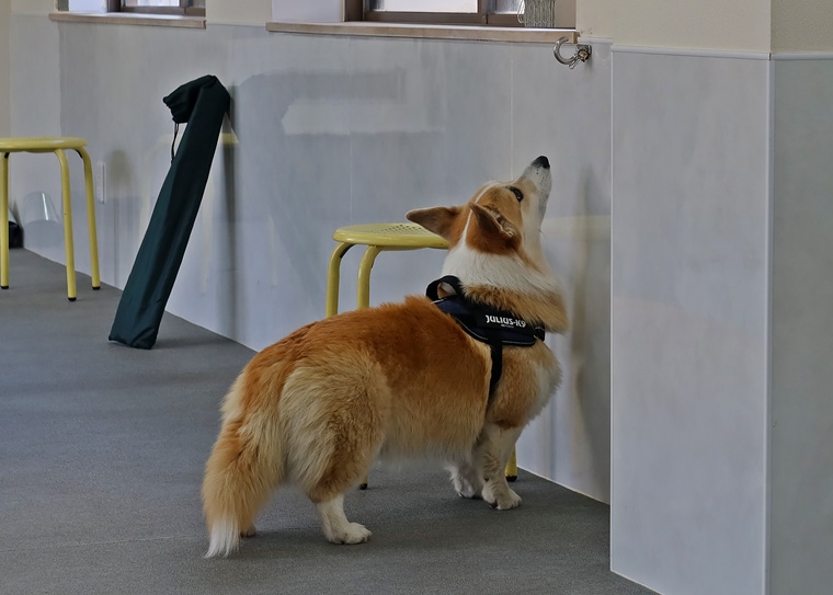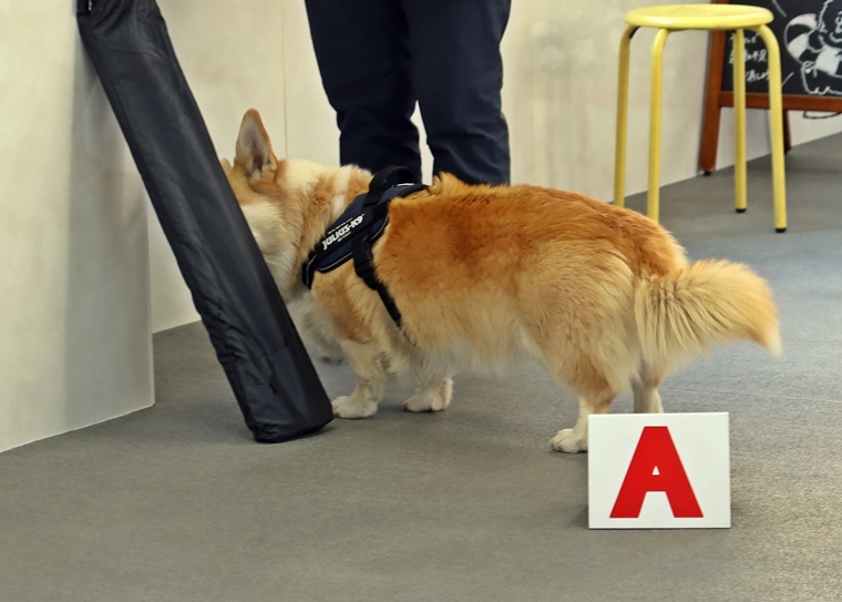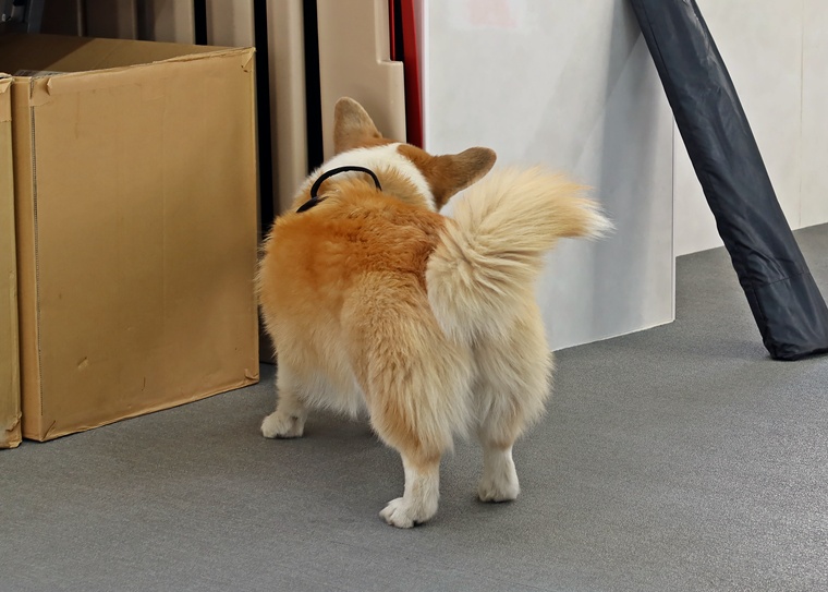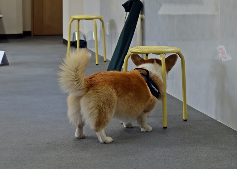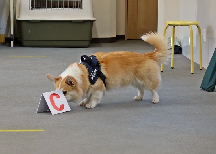 今日のパコ君のノーズワークパーソナルレッスンは、インドアサーチのステップアップセッションです。前回のアウトドアでの告知姿勢の維持の課題に対してインドアで再確認をして頂きました。