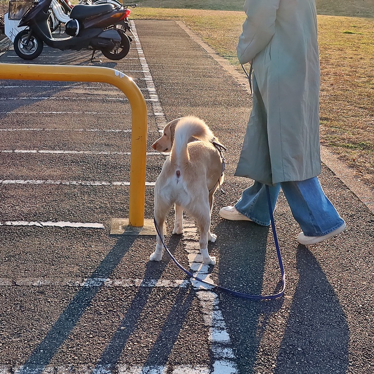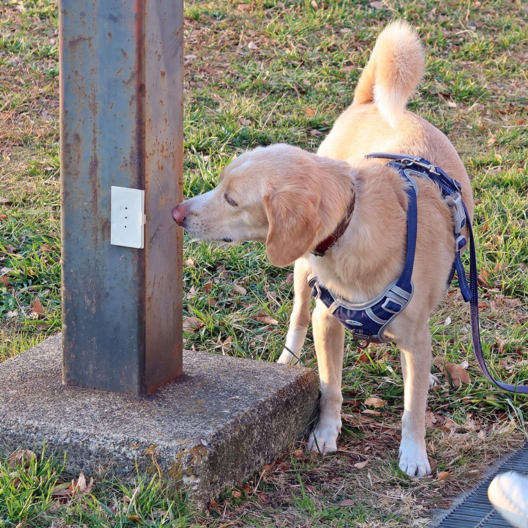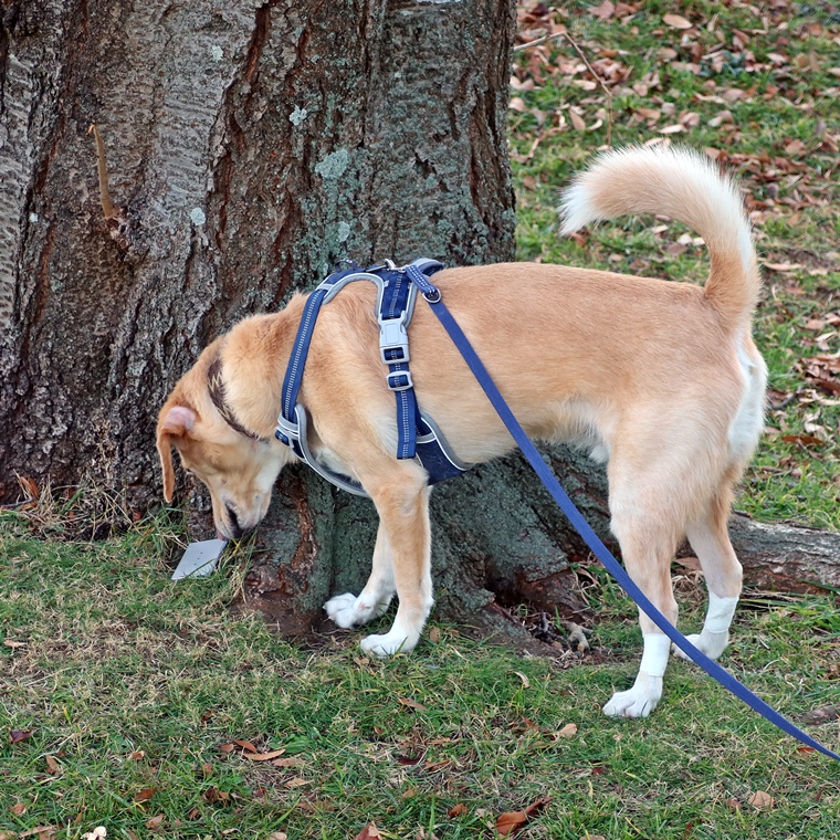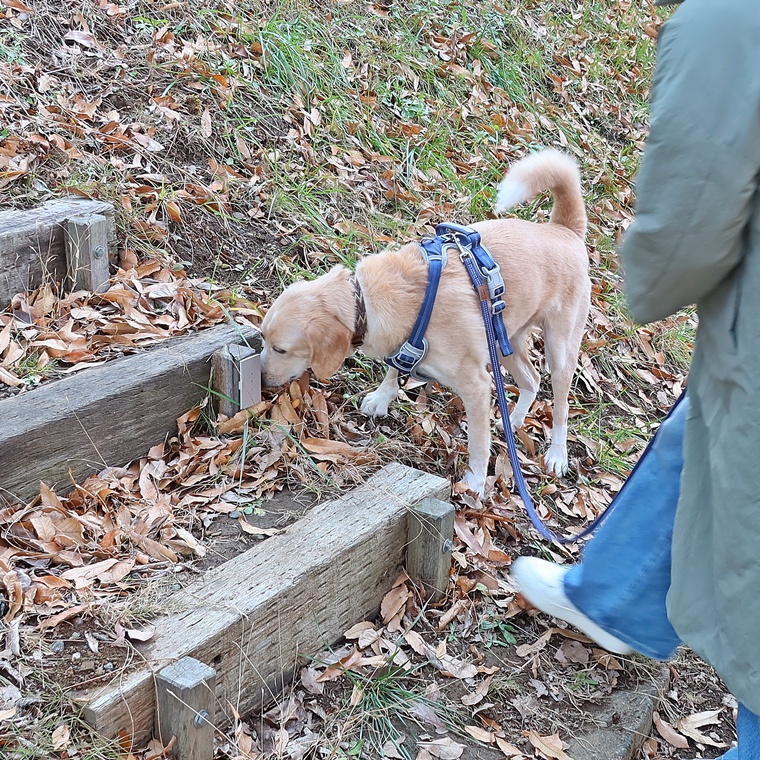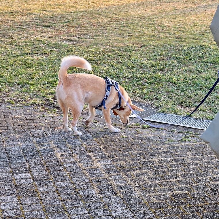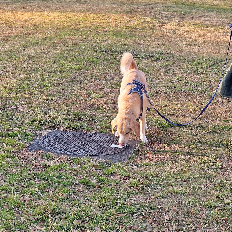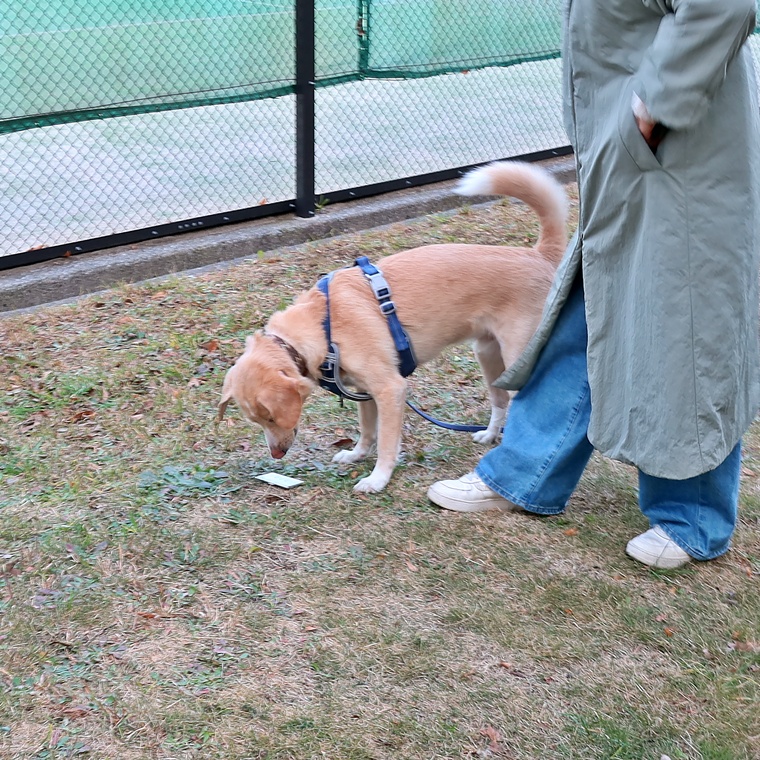 今日のコール君のノーズワークパーソナルレッスンは、アウトドアでのシチュエーションごとのステップアップセッションを行いました。