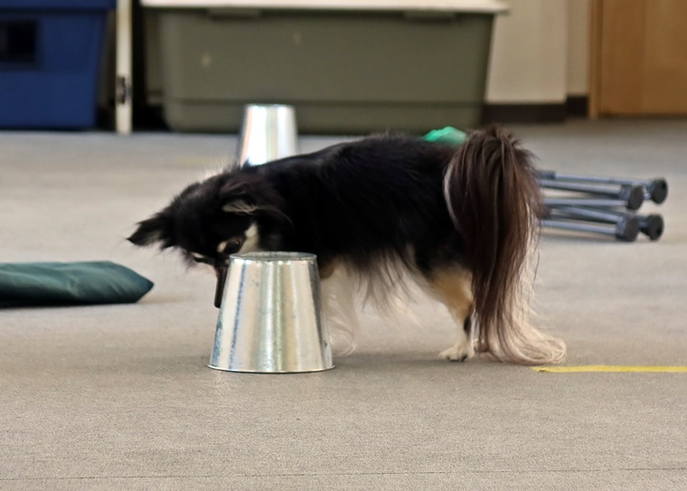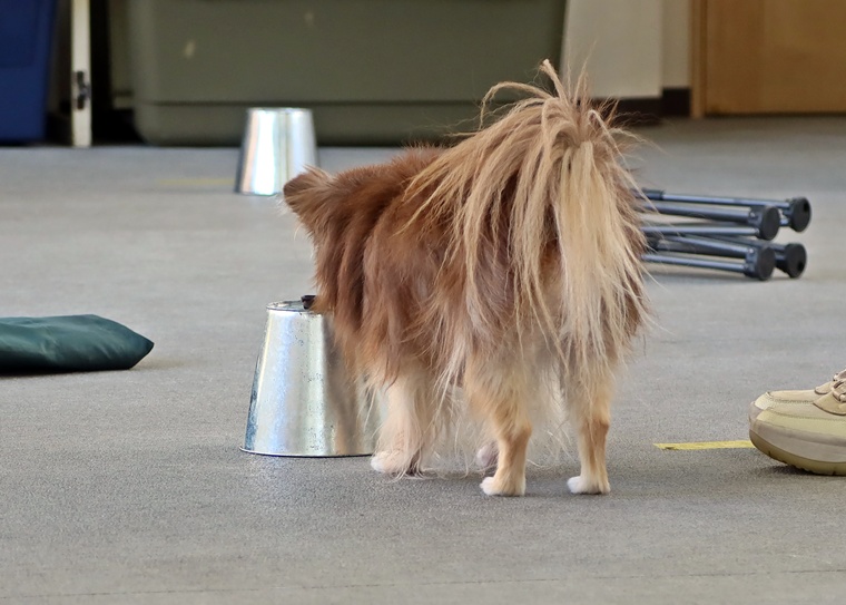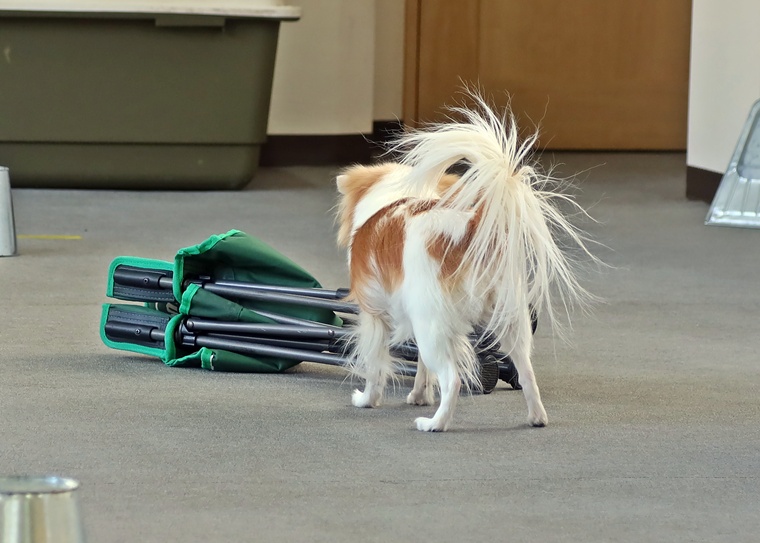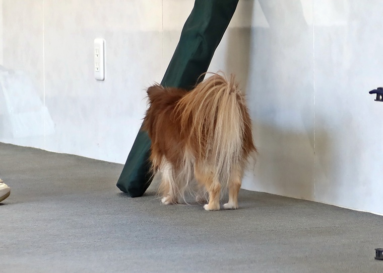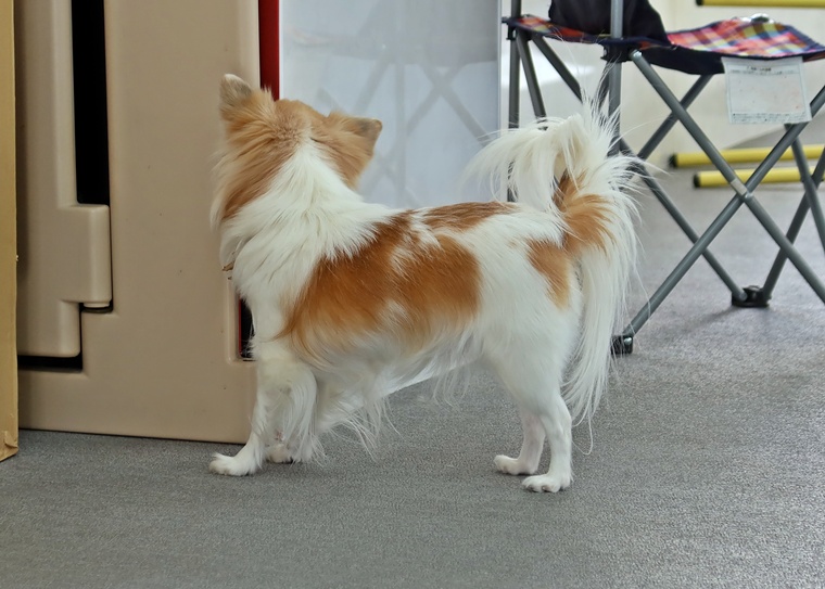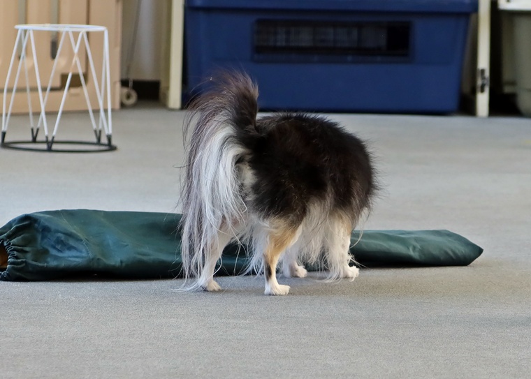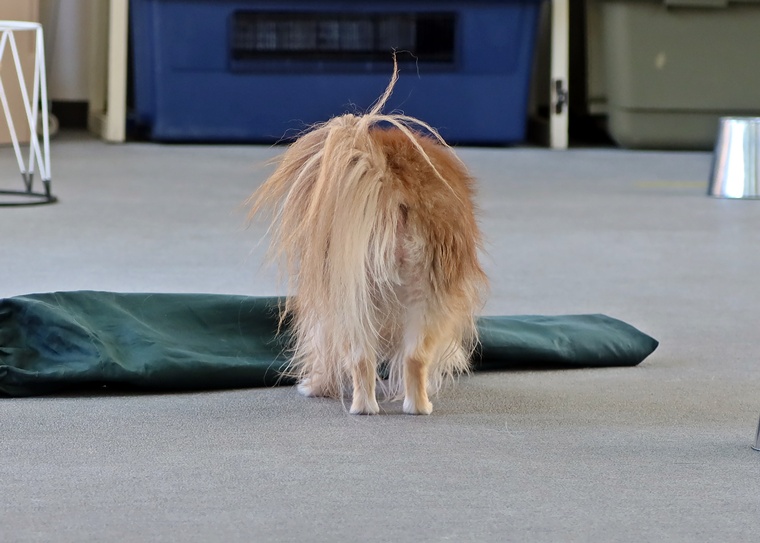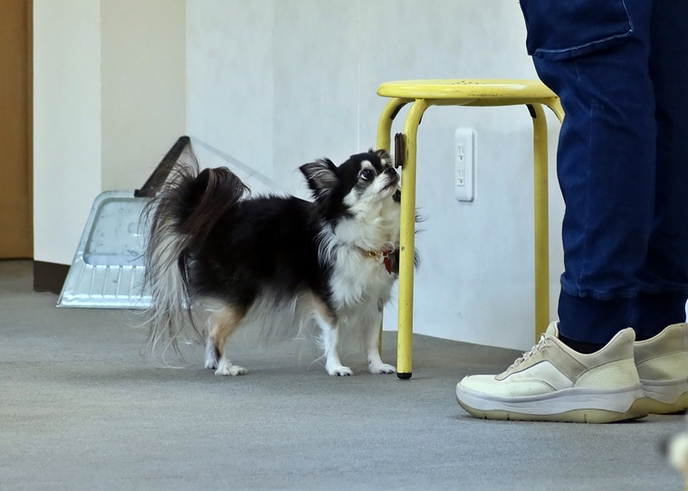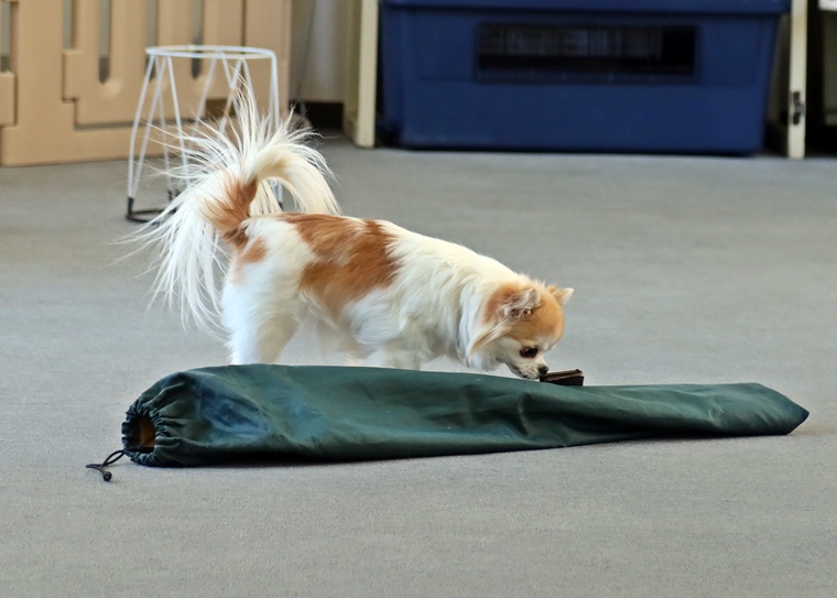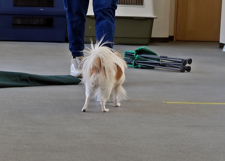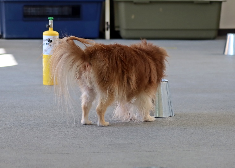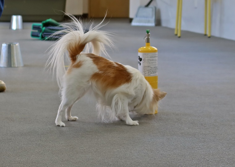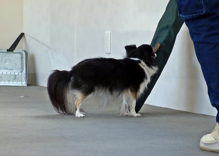 今までよりも設定難易度を上げたために、捜索時間が長くなるセッションが続きましたが、集中が切れず一生懸命探せていました。途中、ハンドラーへの意識が出てきていましたが、すぐに切り替えることができていましたし、金属に対しての拒否反応も乗り越えたあ事で捜索の範囲が大きく広がったようです。