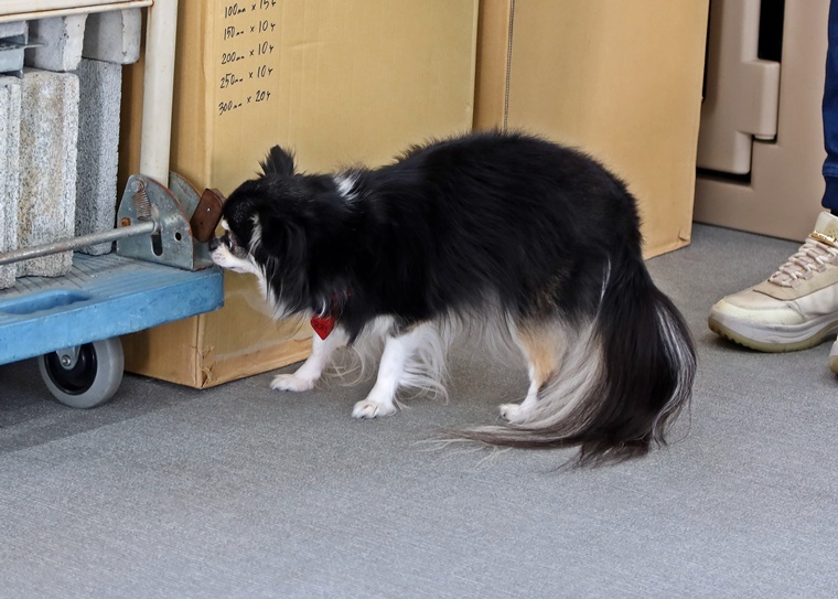 難易度の高い設定も集中力を切らさずに最後まで捜索ができていました。告知姿勢も安定していますのでハンドラーにも分かり易いと思います。