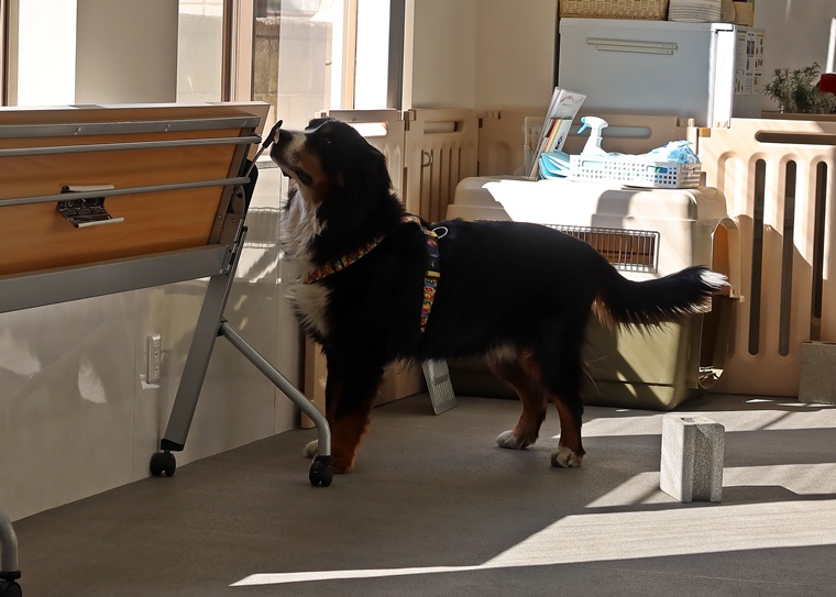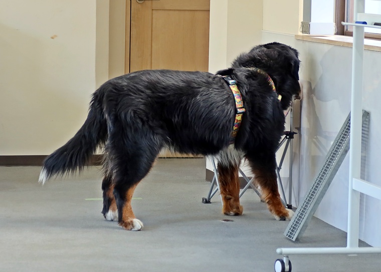 今日のブルーノ君のノーズワークパーソナルレッスンは、3カ月ぶりのノーズワークでしたので、アウトドアサーチではなくインドアサーチのステップアップセッションを行いました。