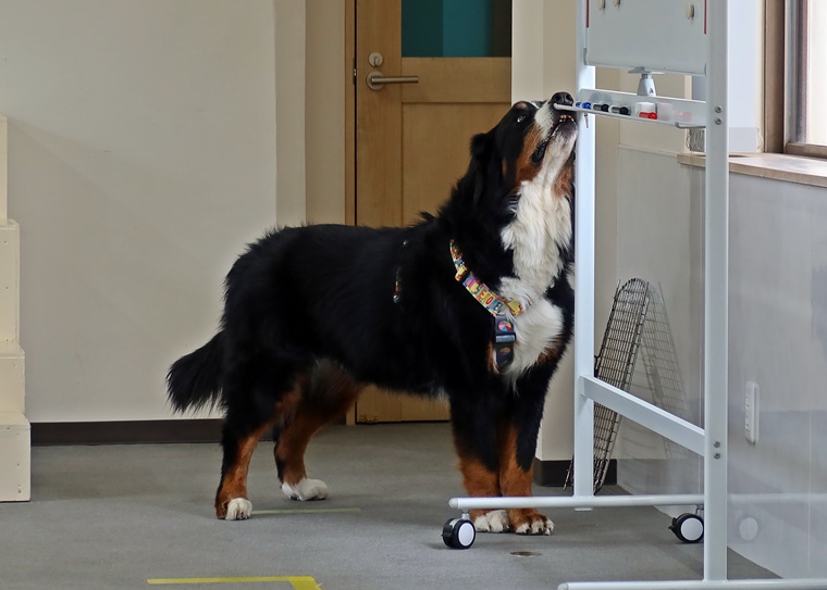 今日のセッションでは、ハイドが小さくなっている事で捜索時間も延びていましたが、集中を切らさずに告知までシッカリ捜索が出来ていました。告知の際の、ハンドラーのモーションを先読みする事で告知の際の振り向きが出てきていましたので、パターン化せずに告知の際の静止姿勢の時間を延ばす為のセッションも同時に行い、後半は安定してきていました。告知姿勢の維持に関して、あまり急激な静止姿勢の時間の延長を考えすぎるとハイドへの接触やスクラッチ行動などが出やすくなりますので、ハイドへの意欲の向上を優先してセッションを進めていきましょう。