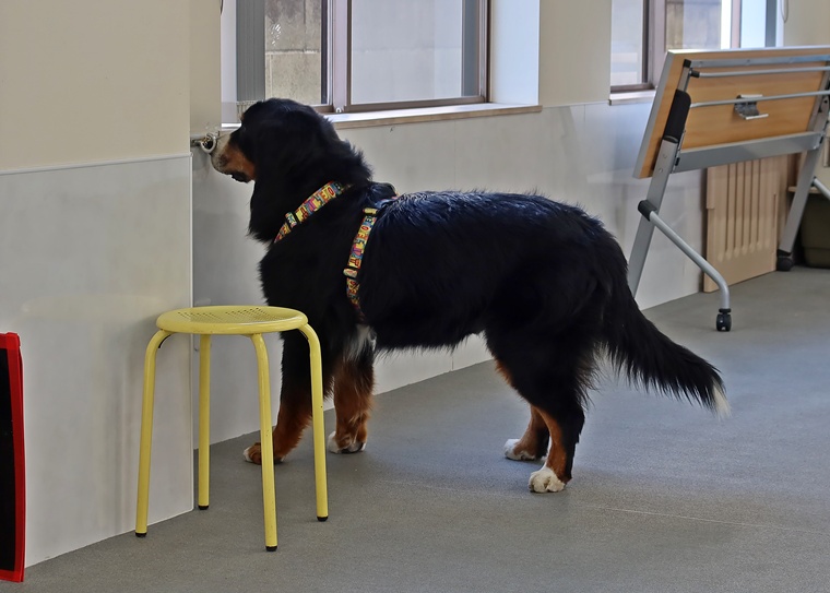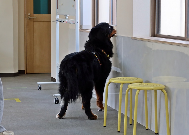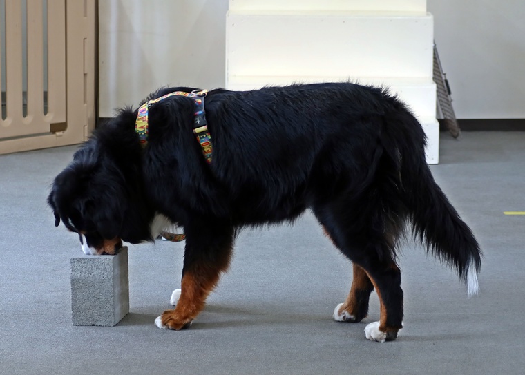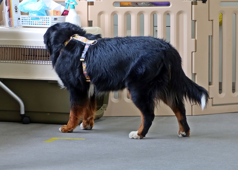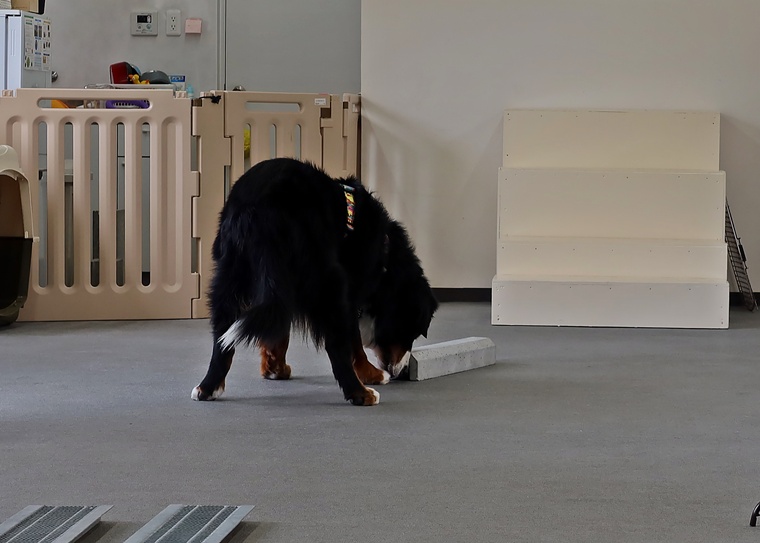今日のブルーノ君のノーズワークパーソナルレッスンは、インドアサーチのステップアップセッションを行いました。