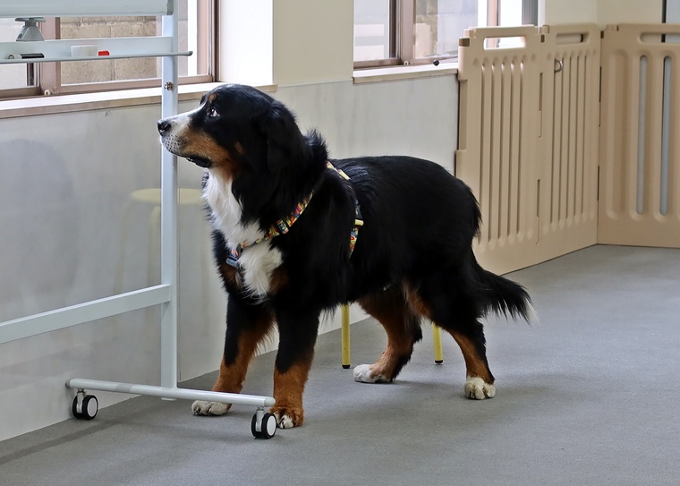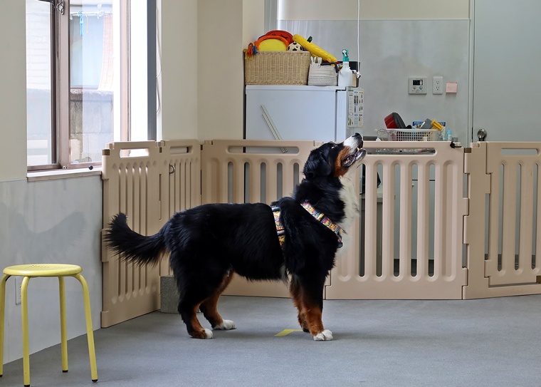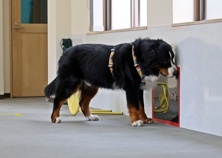 今日のブルーノ君のノーズワークパーソナルレッスンは、インドアサーチのステップアップセッションです。