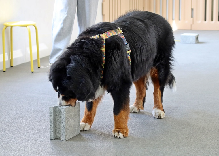 今日のブルーノ君のノーズワークパーソナルレッスンは、インドアサーチのステップアップセッションです。