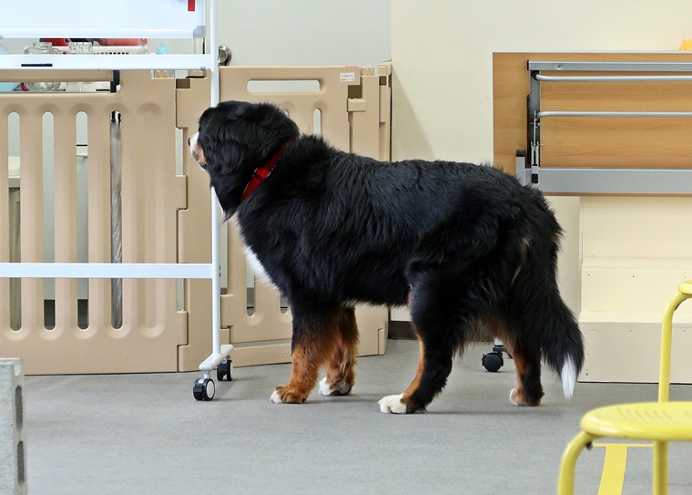今日のブルーノ君のノーズワークパーソナルレッスンは、インドアサーチのステップアップセッションです。