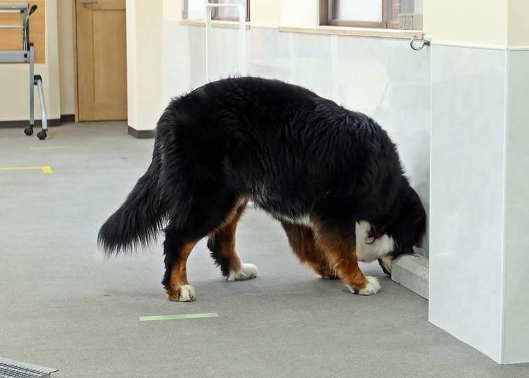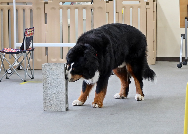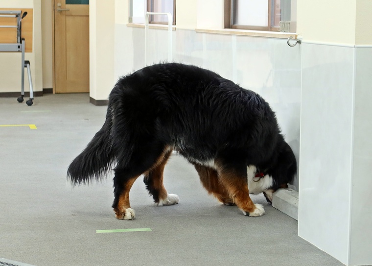湿度が高く、セッション時間が長くなると良い意味での適度な疲れが出てきていました。設定難易度を調整しながら告知姿勢の際の集中などを確認しながらセッションを進めました。スタートポイントをセッションごとに変えることでも、エリアの捜索難易度が変わりますが、ブルーノ君には、エリアの隅々までの設定の理解は既に深まっているようですので、また次回のセッションも楽しんでいきましょう。