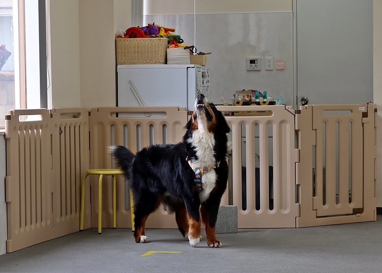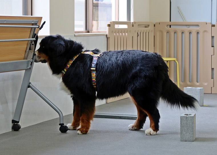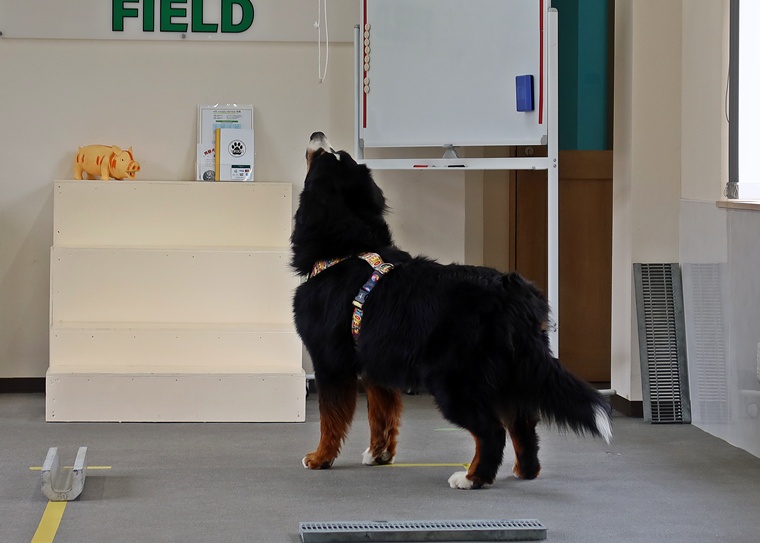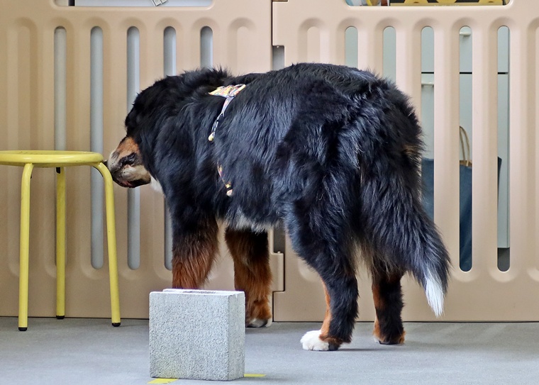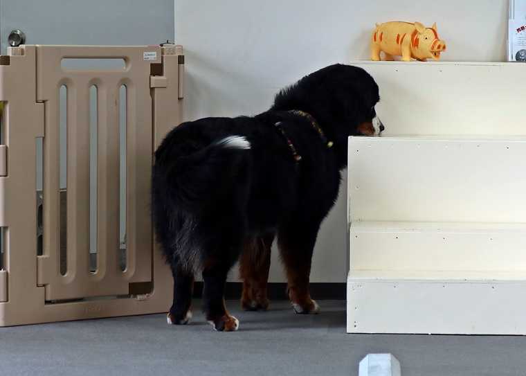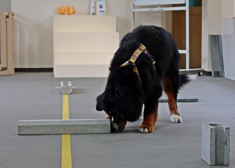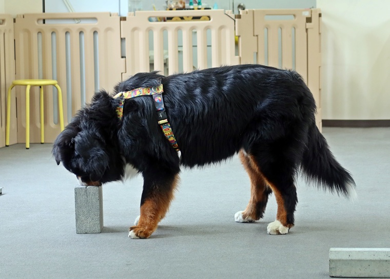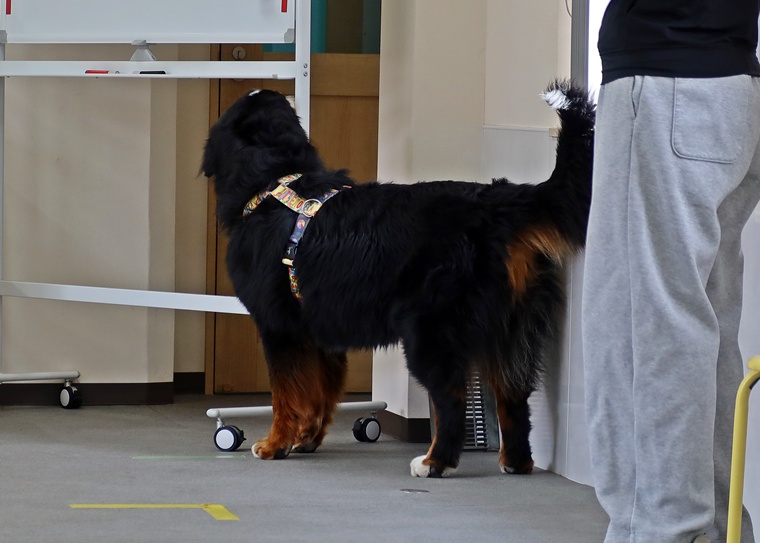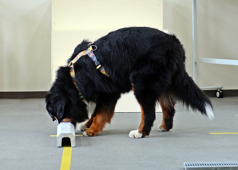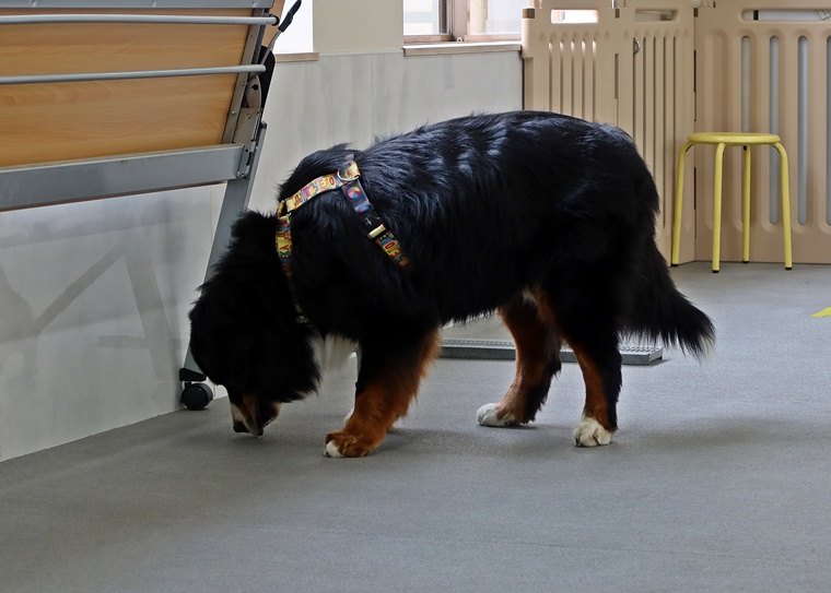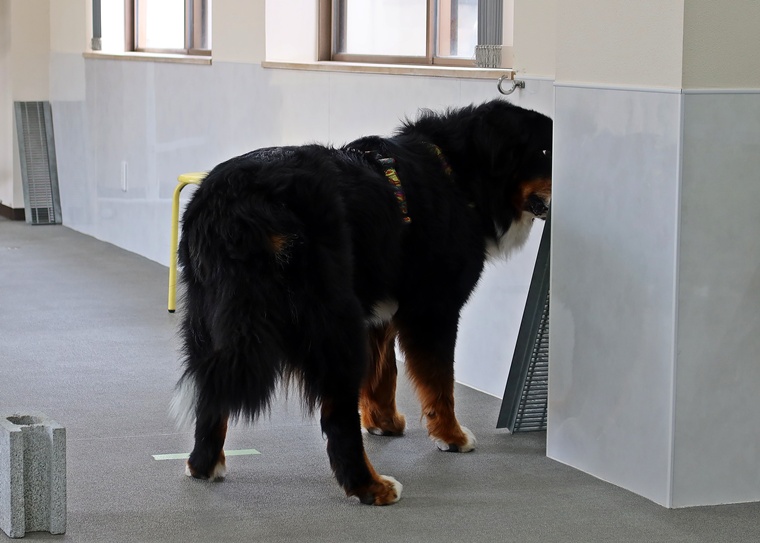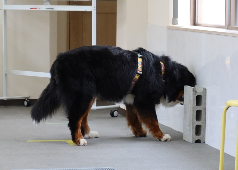 今日のブルーノ君のノーズワークパーソナルレッスンは、インドアサーチのステップアップセッションです。