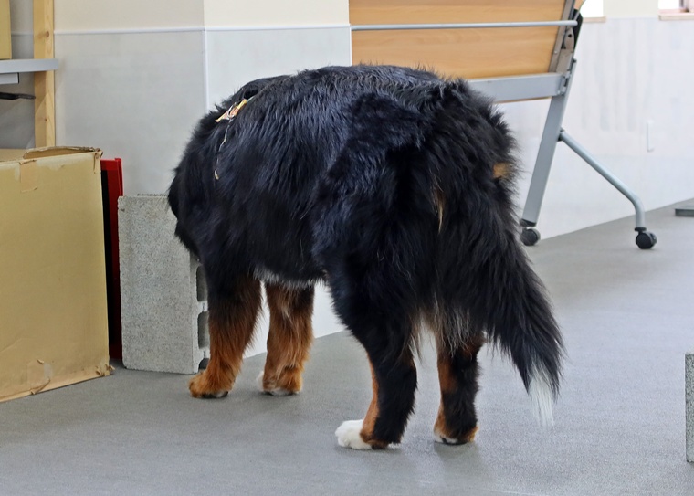 今日は、最後まで集中が切れずに安定した捜索作業を見せてくれました。告知の静止姿勢も安定していましたし、静止姿勢の時間も延びてきています。チャレンジハイの高さのある設定においても、今までの経験値から、ハイドからのアンブレラ効果によるセントコーンへの反応と理解も深まっているようです。良くできました♪
