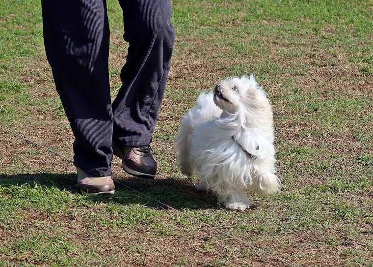 指導手との関係性の見直しを含めて、アーシャちゃんとのコミュニケーションの時間を考えながら、課目への集中につなげられるようにしていきましょう。現時点での紐なし脚側行進への意欲は、基礎トレーニングで意欲的な動きができるようにしながら、トレーニング後の遊びも取り入れ、将来的にモチベーターの変更も視野にいれるようにしていきましょう。