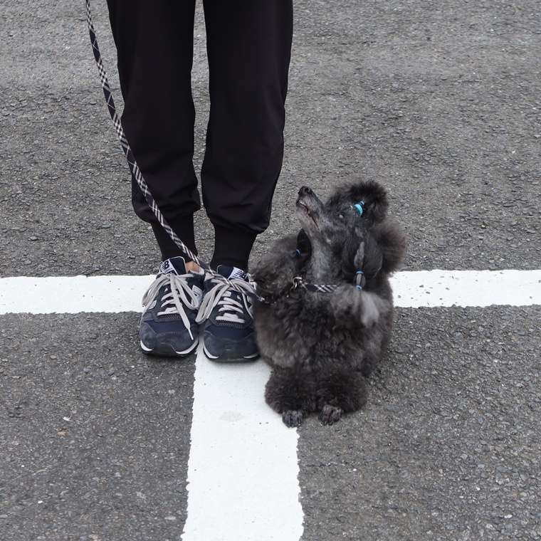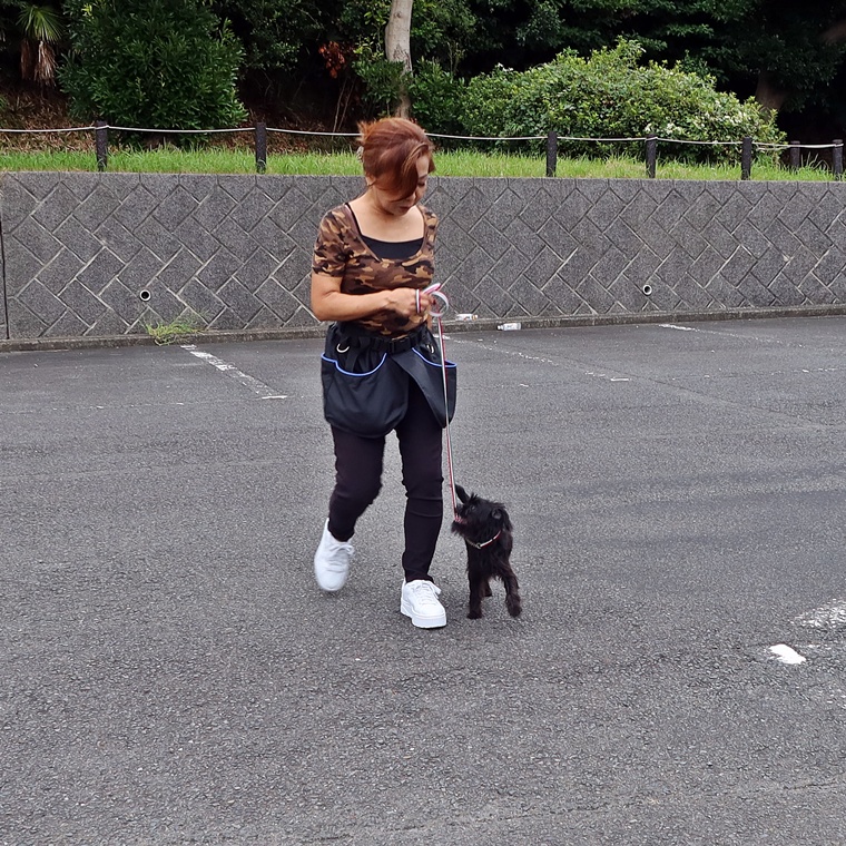 月齢と共に、環境刺激への反応が強まり、飼い主さんへの気持ちが希薄になります。自宅での刺激のないトレーニングとは大きな差がありますので、「こんなはずではない」とは思わず、「屋外では、この程度しかできないのだ」という確認をしながらステップアップをしていきましょう。