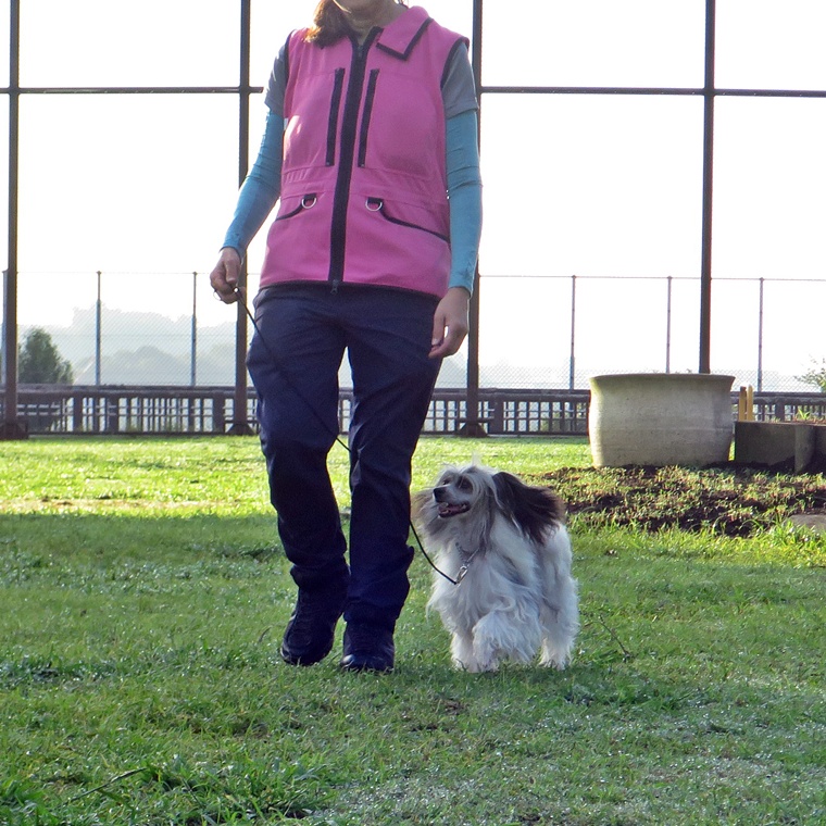 久しぶりのレッスンでしたので、緊張感の方が強く楽しさがありませんでしたので、今後の調整を考えながら取り組んでいきましょう。特に紐無し脚側行進の同調性は低下しますので改善が必要です。招呼への反応は、低調だったころから比較すると動けていますので本来の大和君の動きを引き出せるようにしていきましょう。行進中の伏臥は、濡れている芝生でもできるようにしていきましょう。