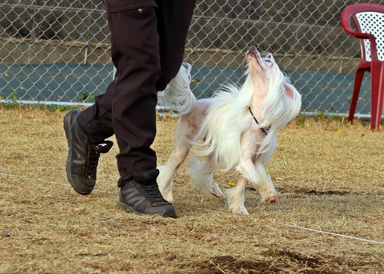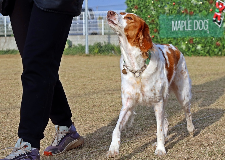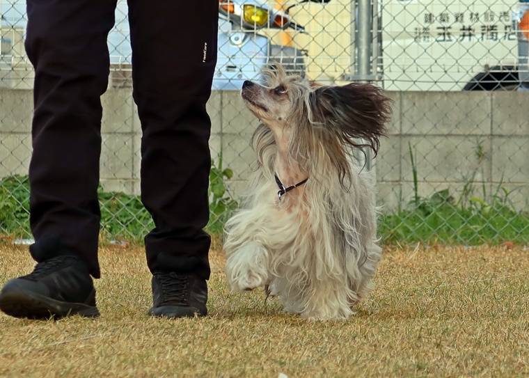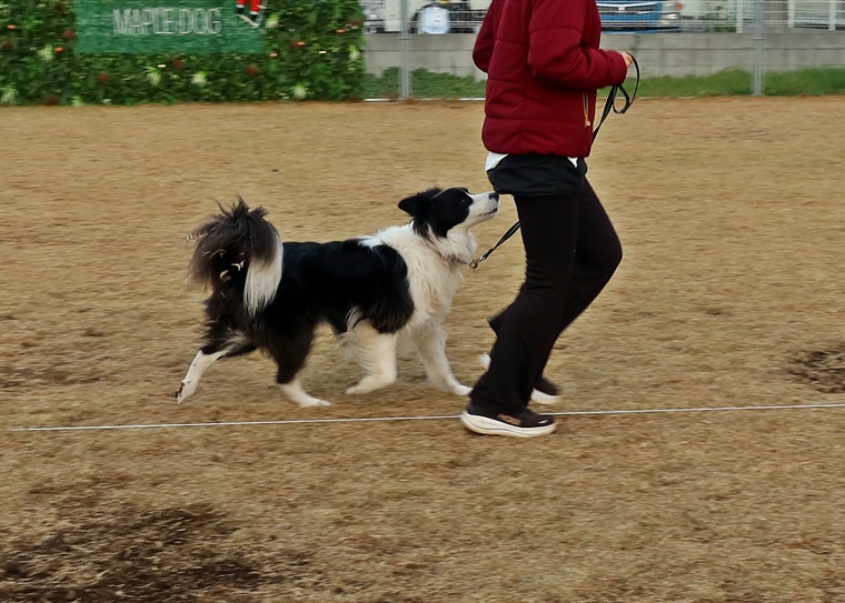 脚側停座と脚側行進の指導手との距離間に関しては、指導手の手の動きに影響を受けていますので、今まで以上に指導手自身の手の動きに気を使いながらトレーニングをしてください。左屈折の動きを再確認して、同調性も高められるようにしていきましょう。課目全体の指導手への集中の維持は、今後も強化すべきポイントとなりますので周りの環境音や刺激に反応しても、指導手優先になるようにトレーニングを続けて下さい。