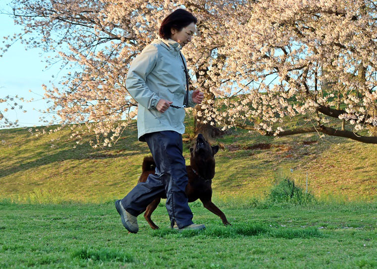 課目トレーニングでの1つ1つの動作の中に、集中が切れてしまう瞬間がりますので、その瞬間を見逃さずに集中を維持したトレーニングを進めていきましょう。特に誉められる事や報酬を得ることができた段階が解除につながっています。脚側行進の距離間は、今後も強化を進めて下さい。集中が維持できると、伏臥と立止の実行性も安定ています。