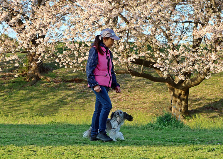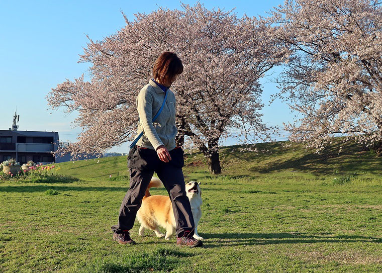 紐付き脚側行進に関しては、以前よりも脚側行進の同調性が出てきています。紐なしになると、指導手の自信が無くなり、歩度や方向性がエンジェルちゃんに合わせる傾向が現在の遅れや不安定な実行性の要因になっていますので、引き続き完成度を高めていきましょう。その場での伏臥が、一旦立止をしてからの伏臥になっていますので、スムーズに伏臥ができるようにしていきましょう。行進中の作業は丁寧に確実に実行させましょう。地面からの匂いの環境刺激に左右されることを、今回のトレーニングで明確になったと思いますので、今後も誘惑臭の中でも指導手のコマンドが優先できるように進めてみて下さい。