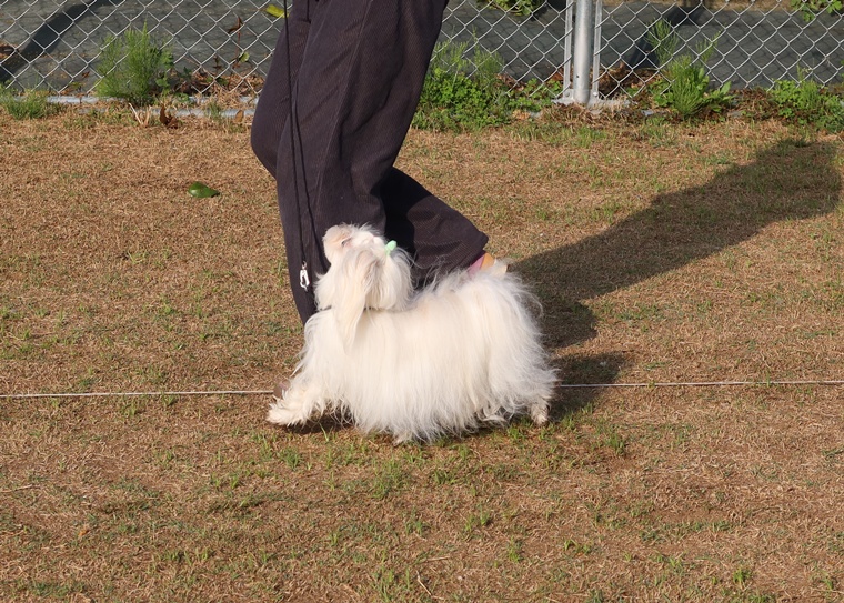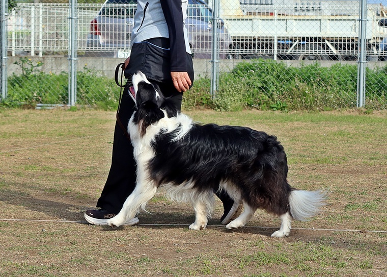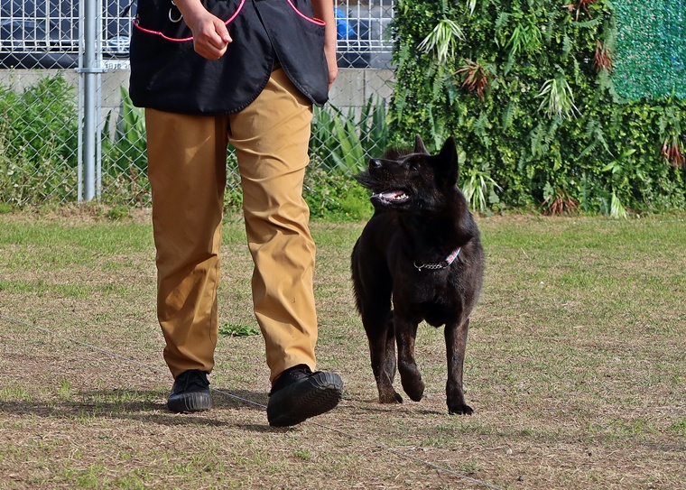 脚側行進も安定してきましたが、指導手の気持ちに余裕が無く、強いプレッシャーとなり遅れや停座の動きの緩慢さに影響を与えています。立止と伏臥の際の動きは安定してきていますので、焦らずに落ち着いて課目をこなせるようにしていきましょう。