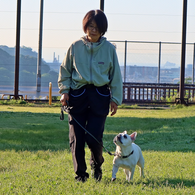 ハル君は、課目開始時の脚側停座のコマンドに対して速やかに反応し脚側停座につけるようにトレーニングをしていきましょう。課目終了時の脚側停座も大切ですが、まずはスタートの際の基本姿勢がとれない限り課目が始まりませんので、日頃から様々な環境刺激の中で「ついて」のコマンドに対して反応を確認し強化しましょう。脚側行進は、少し後方でのポジションになりがちですので、トレーニングの段階では先行気味の脚側行進のポジションでトレーニングを進めて下さい。伏臥と立止に関しては、良くできていますが、報酬を与えるタイミングや指導手の姿勢と視線の方向と「間」を長くとることを取り入れて下さい。