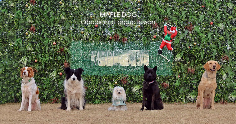 今日のオビディエンスグループレッスンに参加されたのは、トナ君・ローキーちゃん・たんぽぽちゃん・モモちゃん&レティーちゃん・ブルース君&リンゴスターちゃんの5組7頭です。