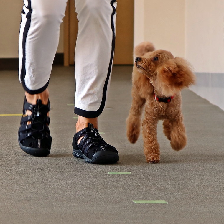 招呼・伏臥・立止のバランスは良くなっていますので、課目間の「間」の取り方や、コマンド出てからの姿勢の維持時間を延ばすなどのステップアップをしてください。行進中の伏臥は、まだコマンドへの反応速度が速くありませんので、一旦停止段階から、素早く伏せられるトレーニングをしていきましょう。行進中の停座は、コマンドへの反応ができていますので、脚側行進の精度を高めて下さい。自由選択課目は、少しずつバリエーションが増えているようですが、課目の精度を高める必要があります。