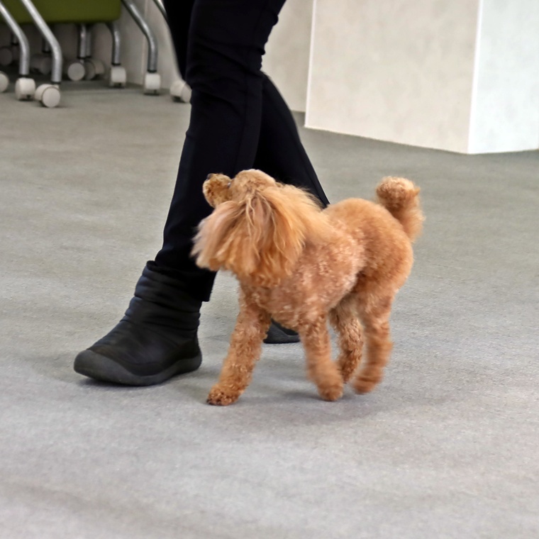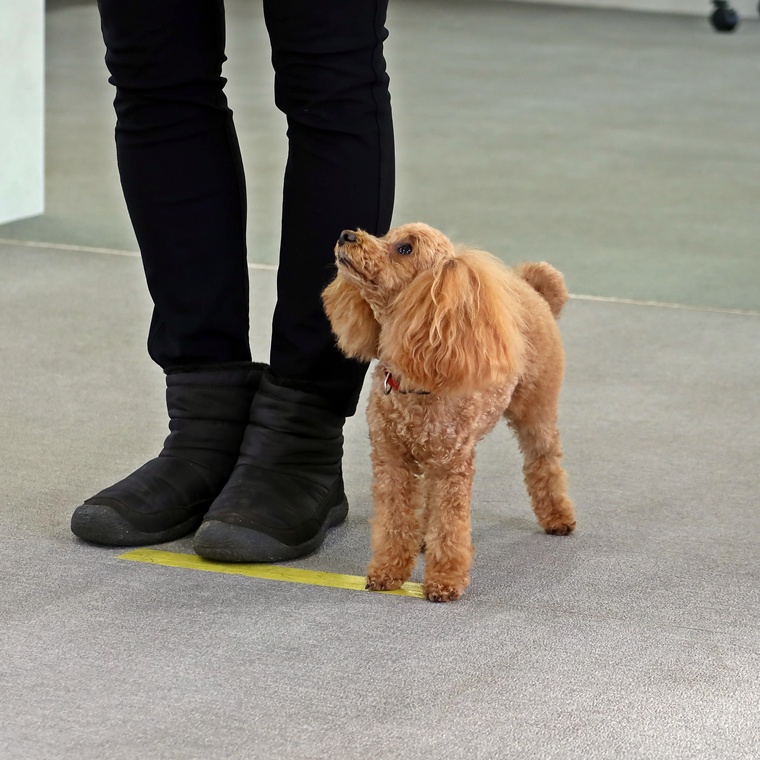 以前よりも脚側行進の姿勢の維持ができるようになってきています。次のステップに進むうえで、現在の基礎トレーニングの組み立てを今一度再確認して、1つ1つの行動を分析しながら基準を考えていきましょう。
