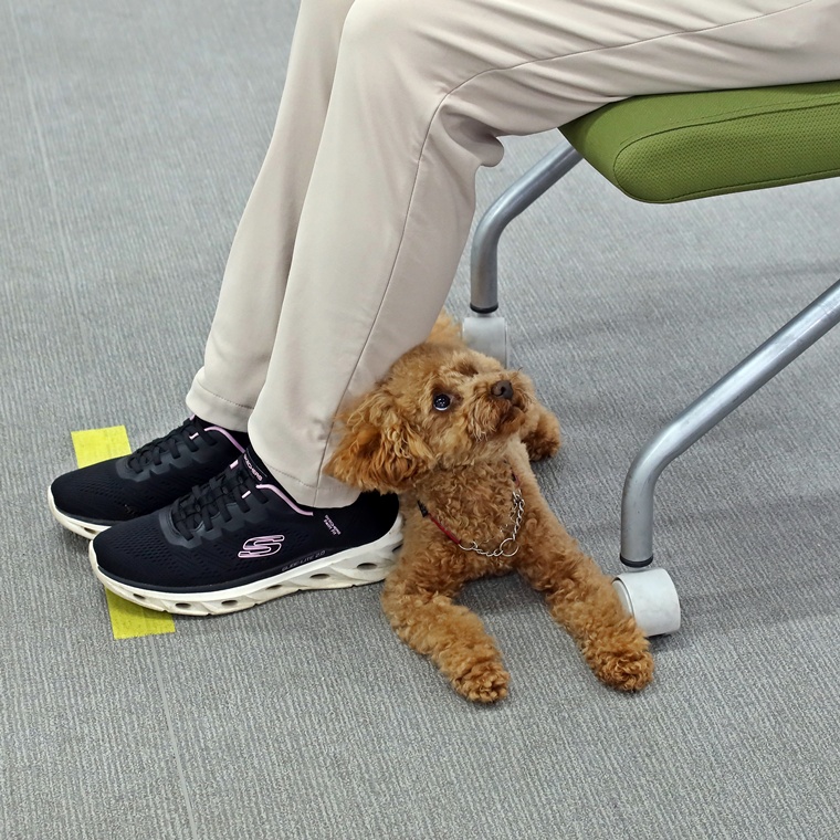お出かけの際のカフェなどで同伴した犬の待機状況で、お店側のルールが違う事が良くあります。普段から、膝の上に乗る事を習慣にしてしまうと、それが当たり前になりますので、大人しく待機が出来なくなります。最近は、バギーに乗せている飼い主さんも多くなっていますが、歩くことに支障のない犬なのにバギーが当たり前になると、犬の健康状態にも大きな影響を与えますし、マナートレーニングの理解も深まらなくなります。どこでもバギーがOKな訳でもありませんし、周りに迷惑をかけている認識も薄れていますので、どんな状況下でも冷静に待機ができるようにトレーニングをしていきましょう。「アンダー」のコマンドは、足の下だけではなく、椅子の下、テーブルの下でも伏せた姿勢で待機ができるようにトレーニングをステップアップして下さい。
