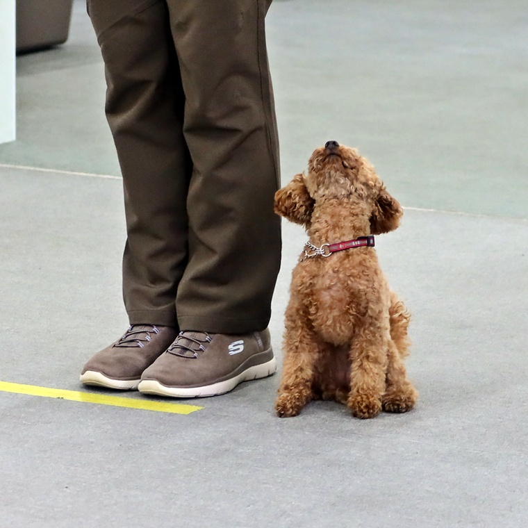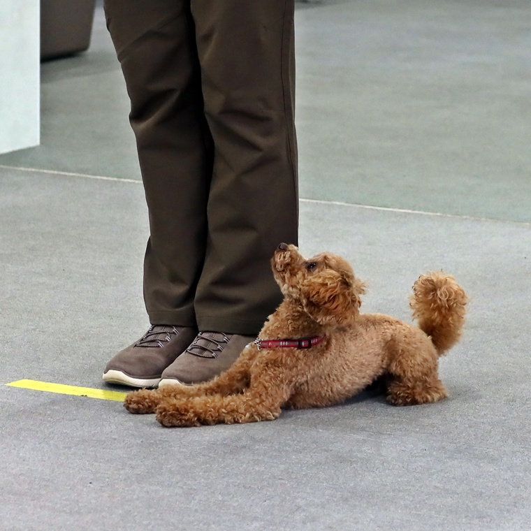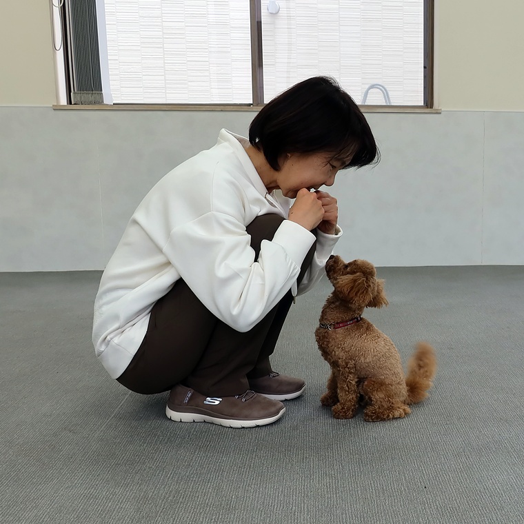 1つ1つとのコマンドに「間」を与える事で、飼い主さんへの集中も高まりますし、何のコマンドが出るのか?という待つ時間を設けられます。今までの先読み習慣から、「間」をとると色々な動きが出てきますので、必ず「Sit」に戻してからコマンドを出すようにして下さい。また、間違った行動のやり直しで報酬を与えないようにすることも大切です。