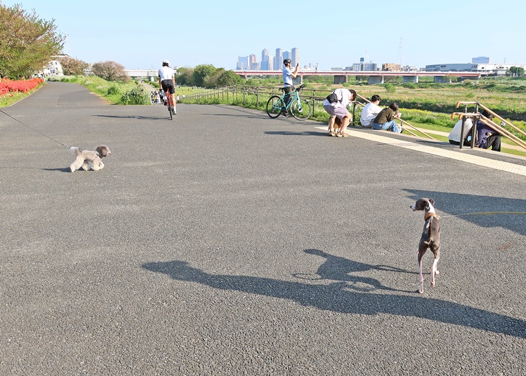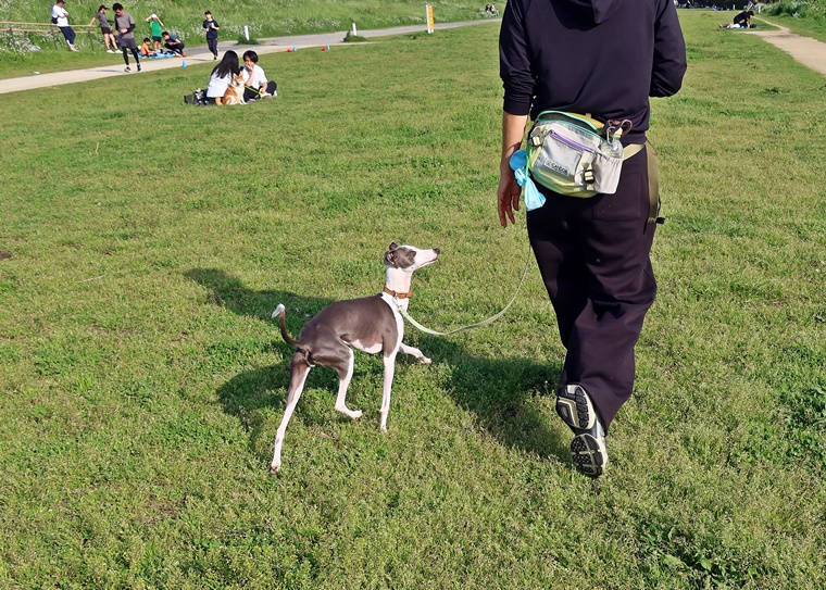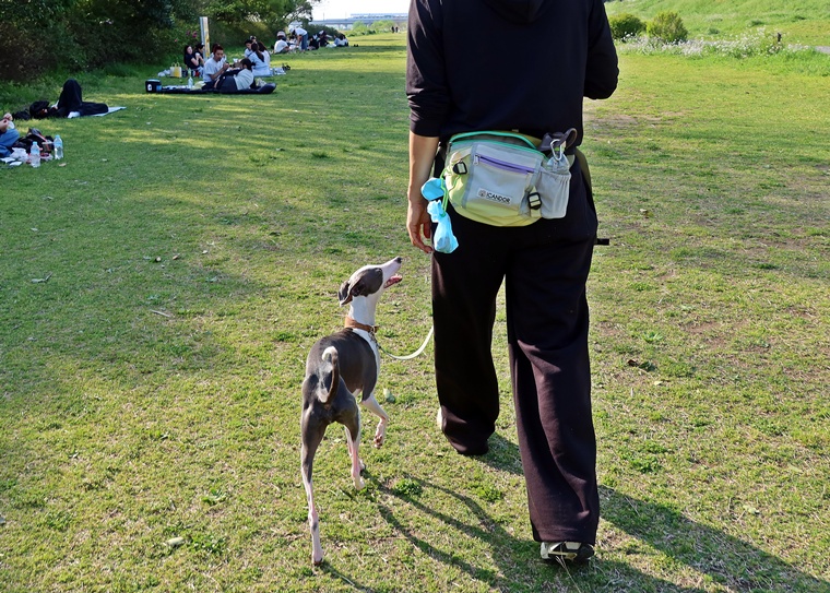 今日のドゥリ君のレッスンは、ご自宅付近でのお散歩トレーニングです。前回のレッスンでトレーニングをした、「ヒールポジション」や課題である他の犬への吠えに対する飼い主さんの対応の実践トレーニングです。「