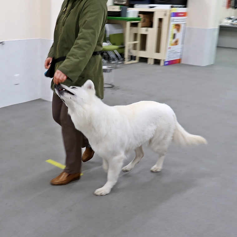 まだぎこちないですが、ヒールポジションの延長線上に「Heel」での歩行があります。別物として教えるのではなく、まずはヒールポジションを強化して、飼い主さんを注視して動けるようにトレーニングをしてみて下さい。