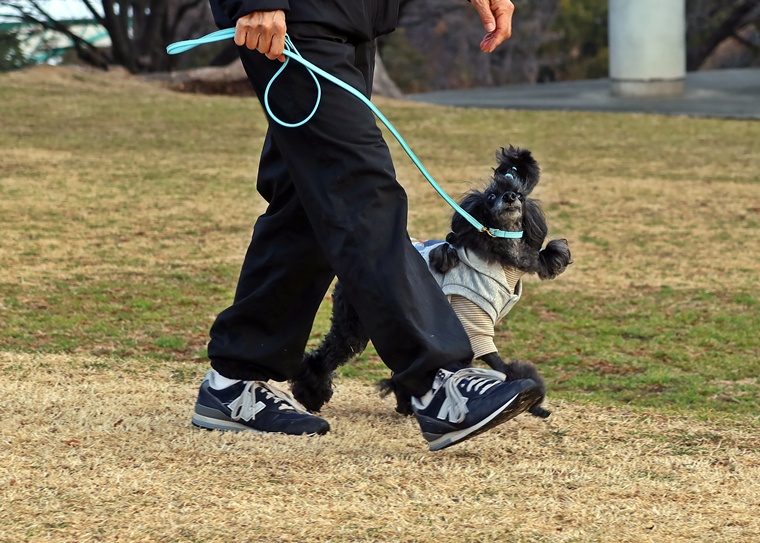 脚側行進の屈折の同調性やターンの膨らみなどの改善が必要です。紐なしでの遅れも、紐付きでの同調性を高めていく事を優先して取り組まないと改善されません。指導手の基本姿勢や課目間の時間の使い方などを工夫して集中できる時間の維持のトレーニングを進めて下さい。