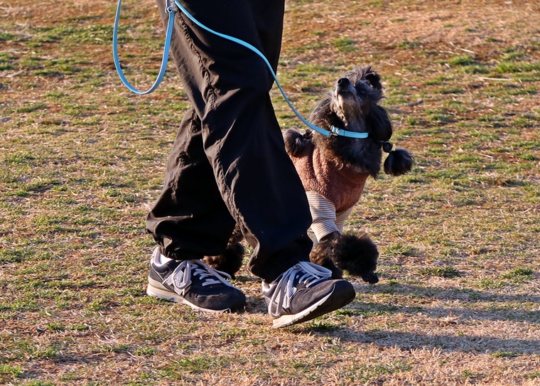 脚側行進の屈折の同調性やターンの膨らみなどの改善に関して、前回のレッスンで指摘させて頂きましたが、具体的に現状の状態が、どうでるか?それに対して、どのような対応を行うべきか?を実践トレーニングしました。今までの、ハリー君に合わせる脚側行進から、ハリー君が指導手に合わせる脚側行進に改善していく必要がありますので、この段階での指導手の歩度・脚側方向など重要なポイントとなります。日頃のトレーニングもガイドライン上の環境でトレーニングをし、曖昧な形だけ繕うトレーニングにしないようにして下さい。