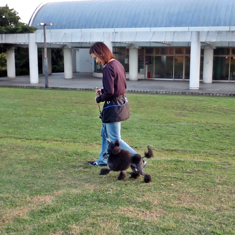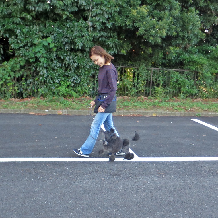 新しい環境で、今までのトレーニングで行っているコマンドに、どの程度反応できるのか?を確認するために、地質の変更で誘惑刺激のレベルを変更してトレーニングを行いました。