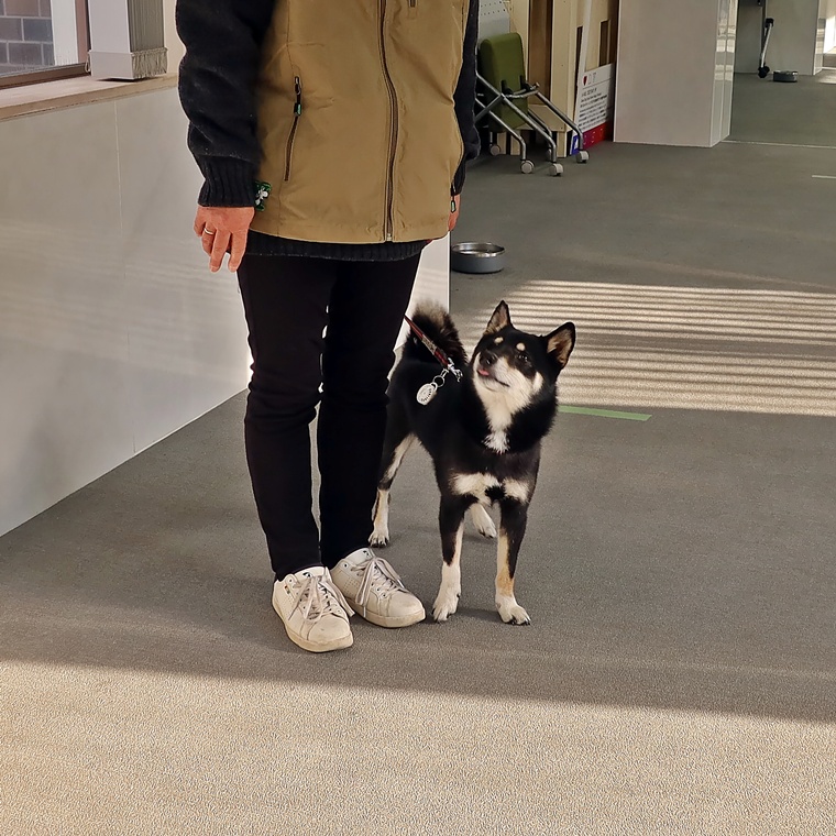 現状のヒールポジションは、少し斜めの位置でのヒールポジションですので、見直していきましょう。特に左屈折の動きを取り入れるとハンドラーとの距離間は縮まります。またトリーツを与える方向によっても姿勢の位置は変更しますので与ええる方向性などをはる君のポジションを見て決めていきましょう。