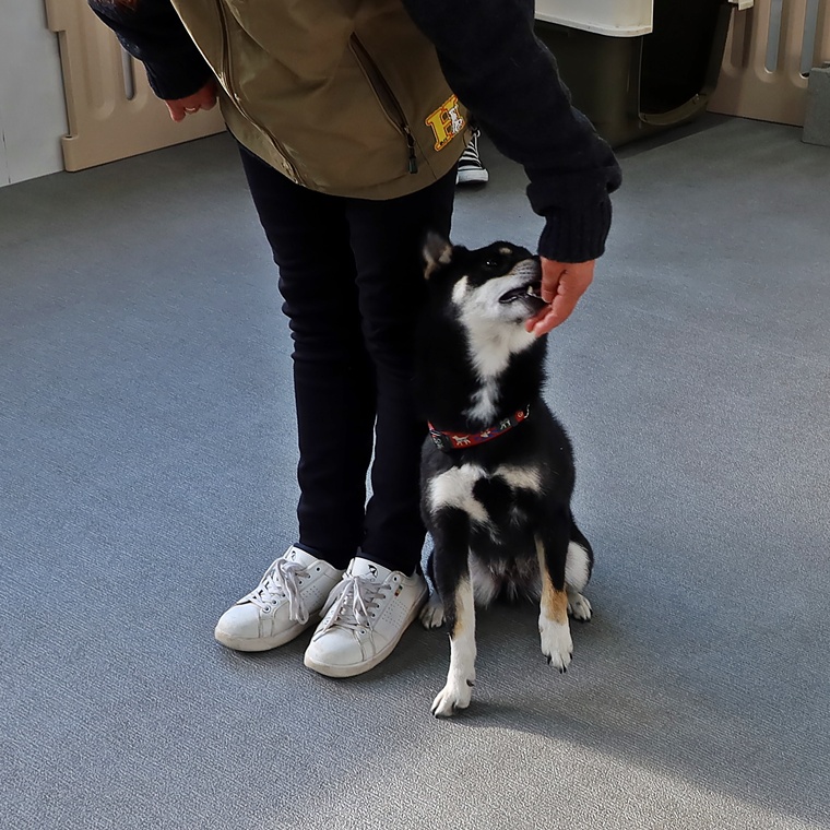 前回よりも「お座り」「伏せ」の遠隔でのコントロールに反応が早くなってきています。ハンドラーからのコマンドとハンドシグナルの出し方なども工夫して、はる君が理解しやすいようにコマンドを出していきましょう。現状では、「立止」の理解が、なかなか進んでいませんが、今回のレッスンで行ったように一時的に係留をしてコマンドの姿勢の移動の仕方を理解させる方法もバリエーションとして覚えておいてください。