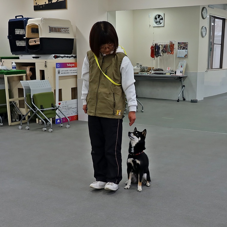 課題は「立って」ですが、今までのトレーニングからのステップアップを進める為に、現在の、はる君から見た飼い主さんの「立って」のコマンドを実行させる為のいくつかのキューサインを1つずつ消去して、声符のみで実行できるようにしていきましょう。その為にも、現状を分析しながら根気強く取り組んでみて下さい。