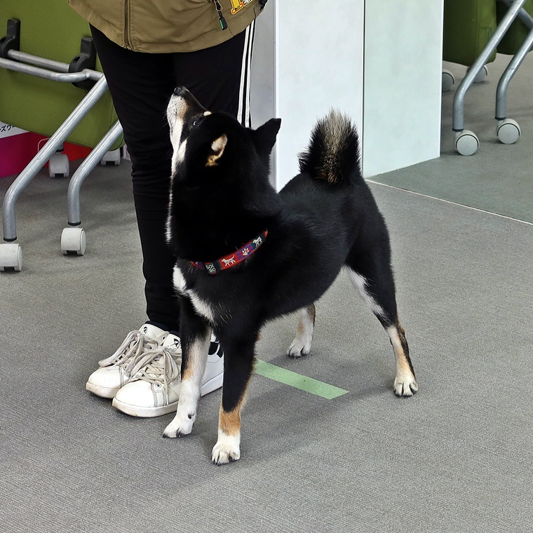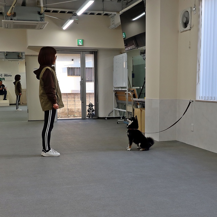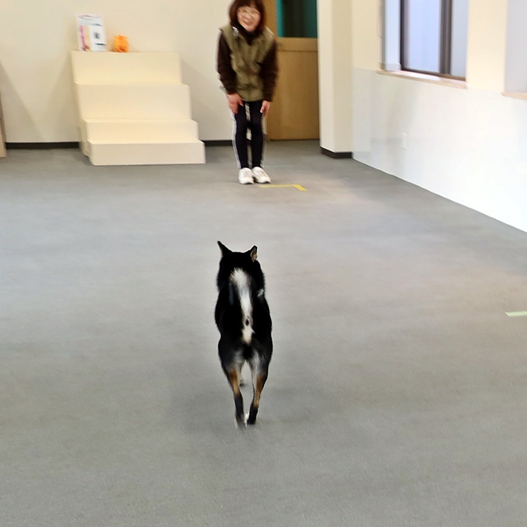 前回のスクールで「立止」のステップアップが進んだことで、1度のコマンドで確実に立止ができるようになりました。招呼も飼い主さんのコマンドを優先できていますので、刺激レベルが高まっても実行性が安定するように工夫してトレーニングをしてみて下さい。