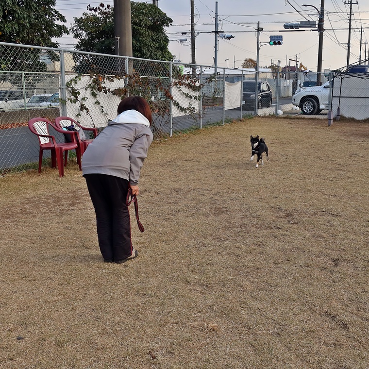 環境に充分に馴らした状態で、呼び戻しの基礎からのステップアップを行う場合。今までも呼ばれている事が分かっていても周りへの興味が優先していましたので、確実に飼い主さんの元へ戻る事を関連付ける段階から始めましょう。