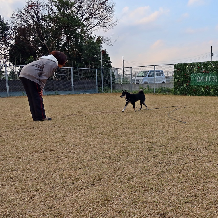 今日のはる君のレッスンは、MAPELDOGでの課題の確認とコマンドの基礎トレーニングを行いました。