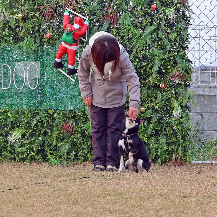 例えば、「Heel」のコマンドの場合、環境馴致を考えずにコマンド実行性だけを考えてはる君の動きを見てしまうと、ヒールポジションは分かっていても、周りの事が気になって飼い主さんのコマンドに集中出来ない状況になりますから、必然的に飼い主さんのコマンドは優先されずに、実行性が伴わなくなります。客観的に見ると、コマンドを無視された形になり、無視されたくない飼い主さんはトリーツで取引してしまう結果になります。ここで考えなければいけないのは、従わないはる君にトリーツで取引をしてしまう習慣になっている飼い主さんの考え方は、当然、改善するとしても、まずは環境に馴らしていない事が要因で、飼い主さんのコマンドが届かない事に気が付かなければいけません。